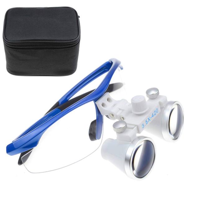 ブルー 拡大鏡 双眼ルーペ メガネ式拡大鏡 3.5倍拡大鏡 420mm 光学拡大鏡 光学ルーペ 虫眼鏡 軽量 実験室用 研究用ルーペ 技工用 収納ボックス付き ケース付き 携帯便利 (ブルー)