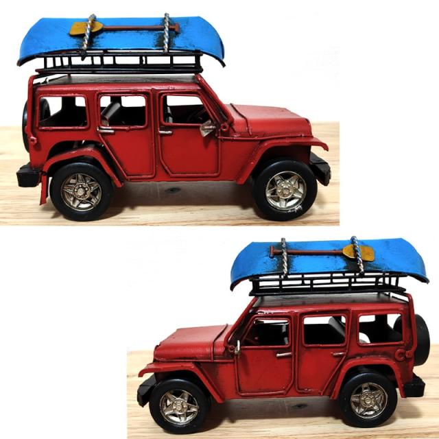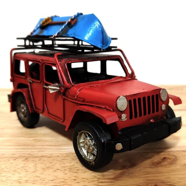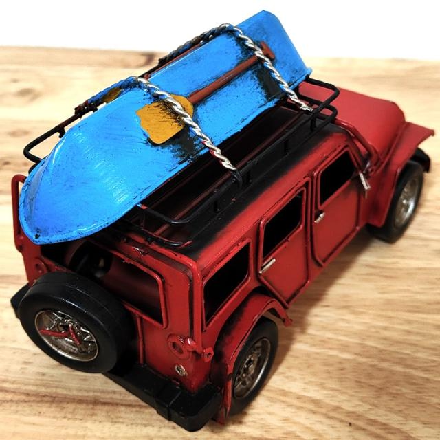 ビンテージカー おしゃれ 4WD レッド サーフィン オブジェ ブリキ 車 置物 レトロ かっこいい アンティーク 可愛い アメリカン