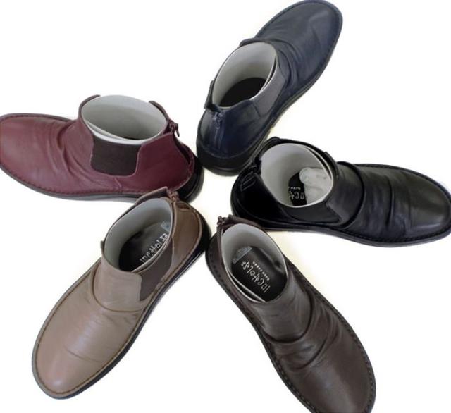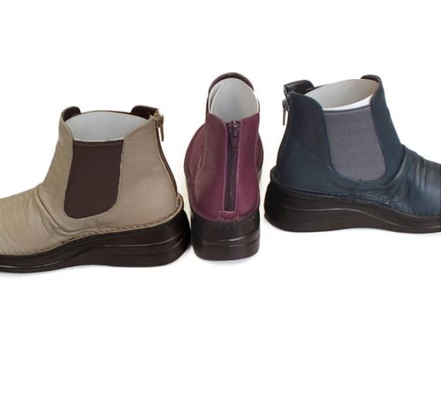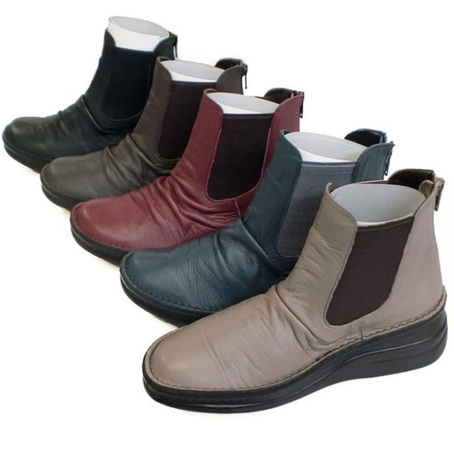 日本製 本革 サイドゴアブーツ レディース ショートブーツ ウェッジヒール 5cm 厚底 幅広 3e 4e レザー ブーツ サイドゴア くしゅくしゅ 外反母趾