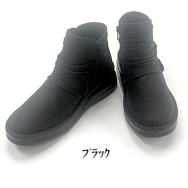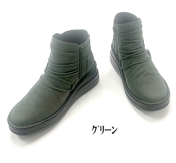日本製 本革 ショートブーツ レディース ブーツ ウェッジヒール 5cm 厚底 幅広 3e 4e レザー レースアップブーツ
