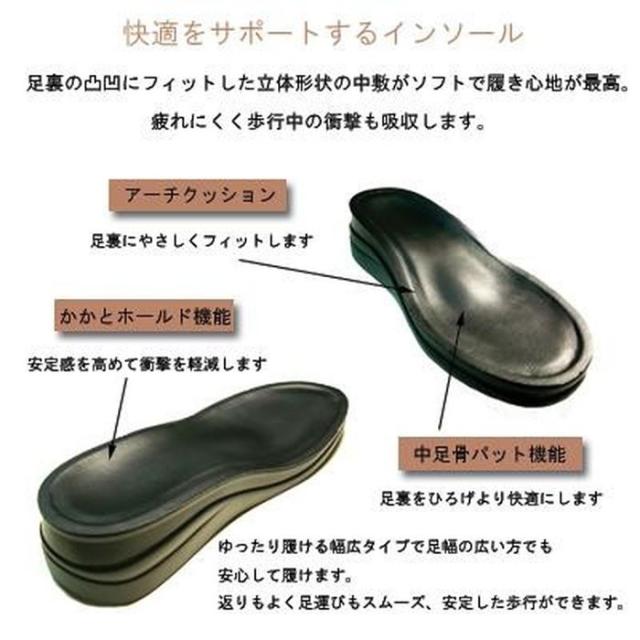 足裏にフィットする立体形状インソールは地面からの衝撃を軽減し、疲れにくく快適な履き心地。