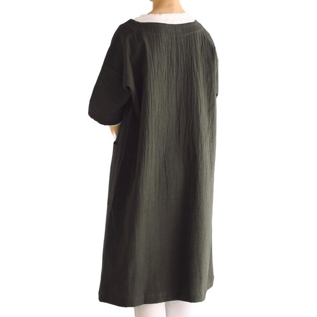 ●ゆったりとした身幅のシルエットで身体のラインを拾わない、ワンピースのようなエプロンです。