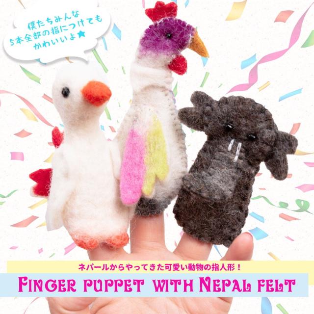 優しいぬくもり ネパールフェルトのフィンガーパペット / 手作り 指人形 ぬいぐるみ インド アジア エスニック 雑貨