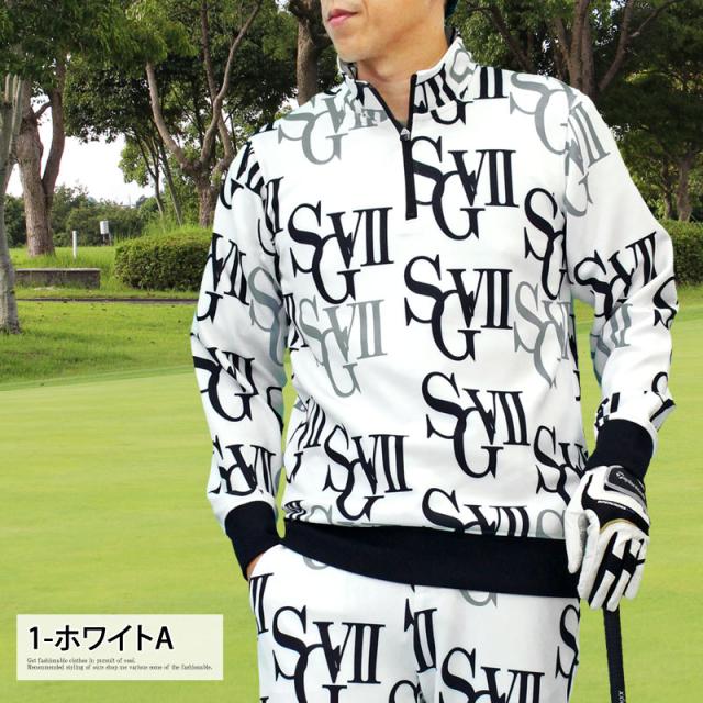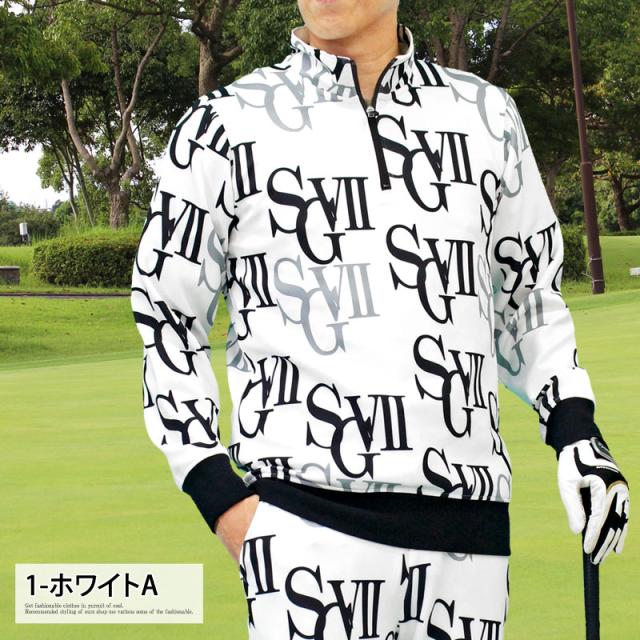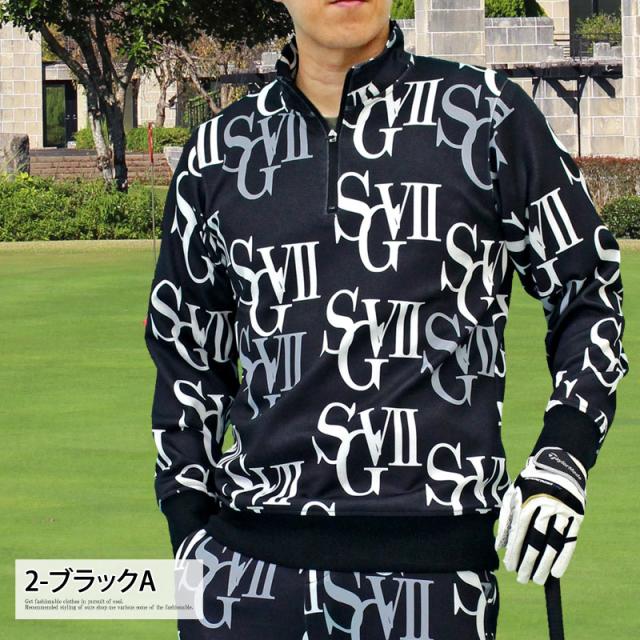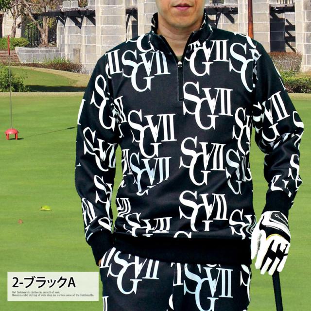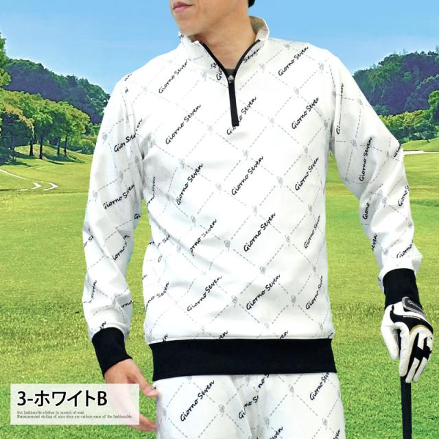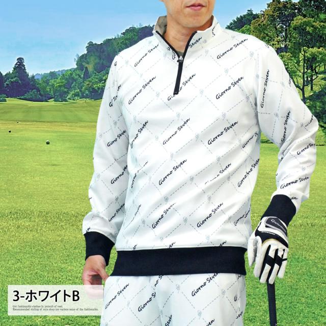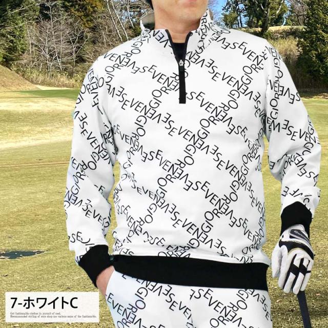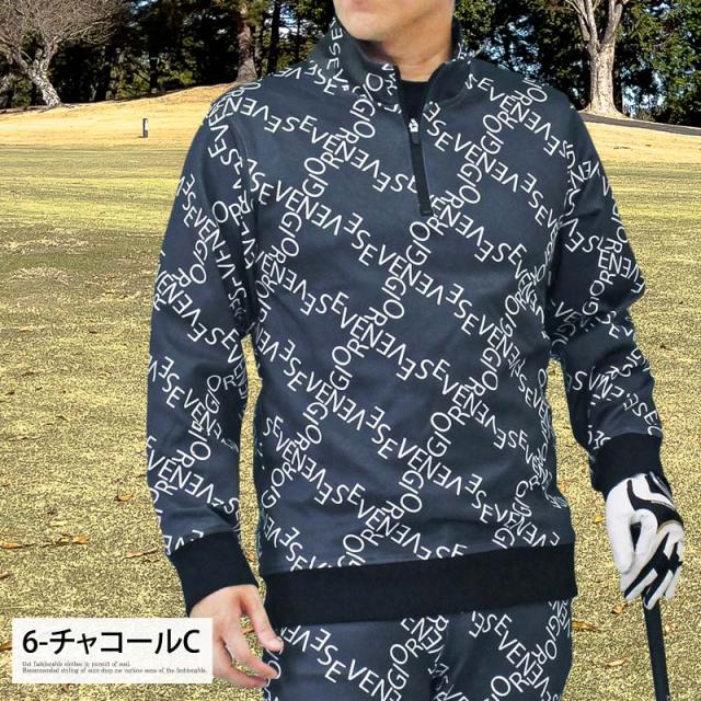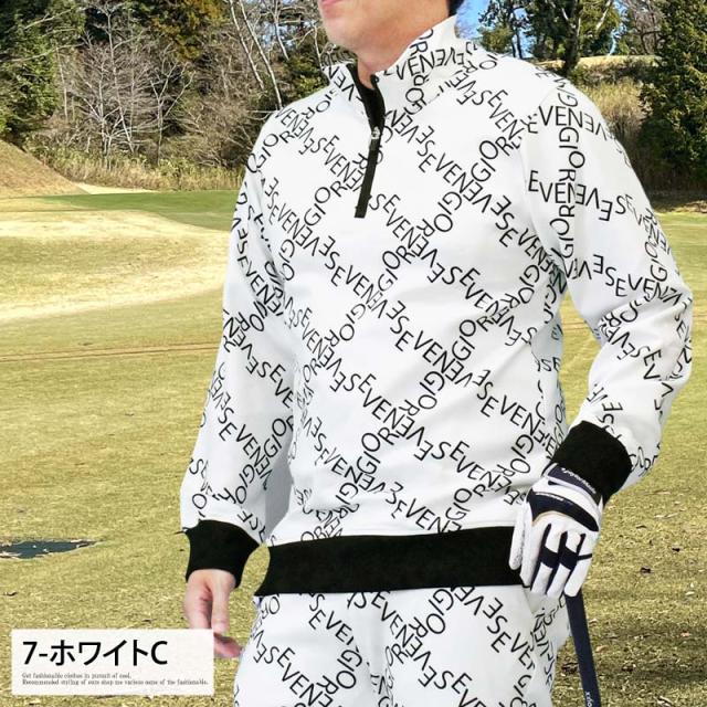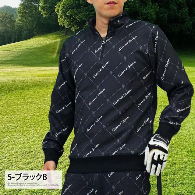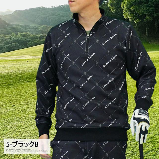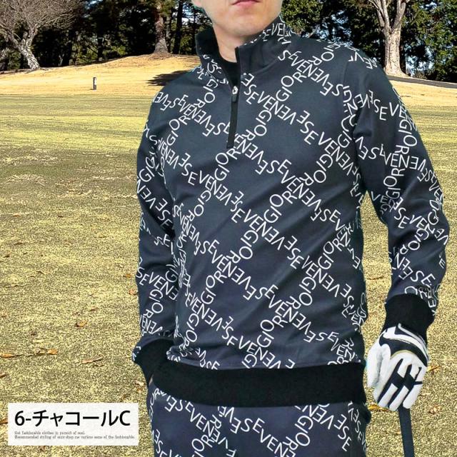 M~XXL 新作 ゴルフウェア メンズ ハーフジップ トレーナー スタンドネック GIORNO SEVEN ジョルノセブン 長袖 総柄 ロゴ トップス プルオーバー カジュアル スポーツMIX おしゃれ 秋冬 春夏 送料無料