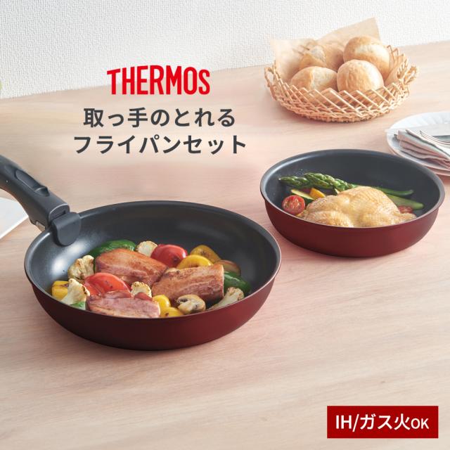 着脱できる取っ手で使い勝手抜群!THERMOSブランドのフライパンセット。