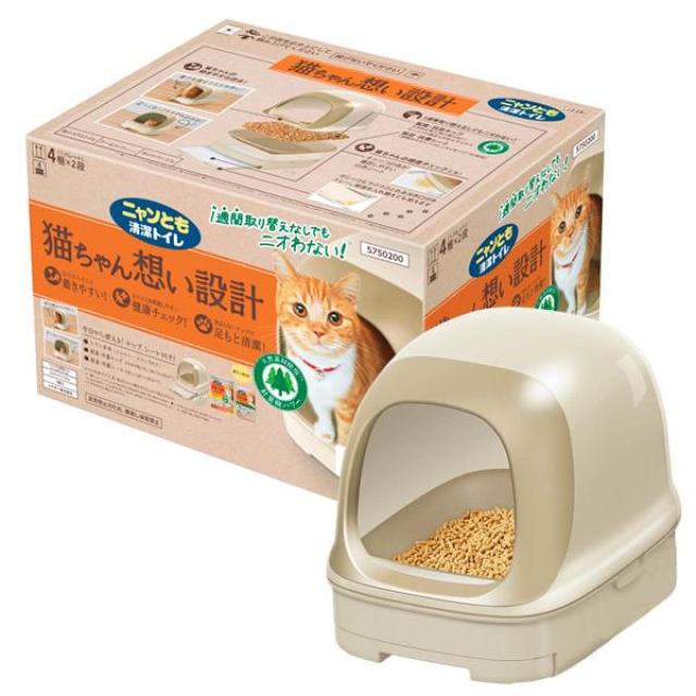エステー ニャンとも清潔トイレ ドームタイプ ライトベージュ 猫用 トイレ 本体 セット 約1か月分チップ・シート付 猫トイレ