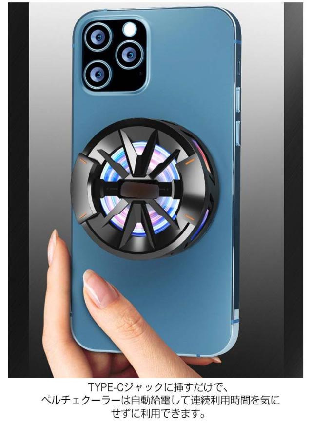 | スマートフォンが熱くなったらすぐに冷やせる!全機種に対応できるスマホクーラー。 ペルチェ式を採用しており、スマホの温度上昇をしっかり抑えて、熱から大切なバッテリーを守り。 スマホクーラーはマグネット式とグリップ式の2WAYなので、スマホやタブレットなど用途に合わせて使えます スマホクーラーがコンパクトなため、持ち運びに便利です。 面積の大きい半導体冷却シートがぴったりフィットし、効率よく熱を伝導し、瞬間に冷却します。 冷却ファンは運転音が小さいので、通話や生放送をする際にもおすすめです。 type-Cジャックに挿すだけで、ペルチェクーラーは自動給電して連続利用時間を気にせずに利用できます。 | |