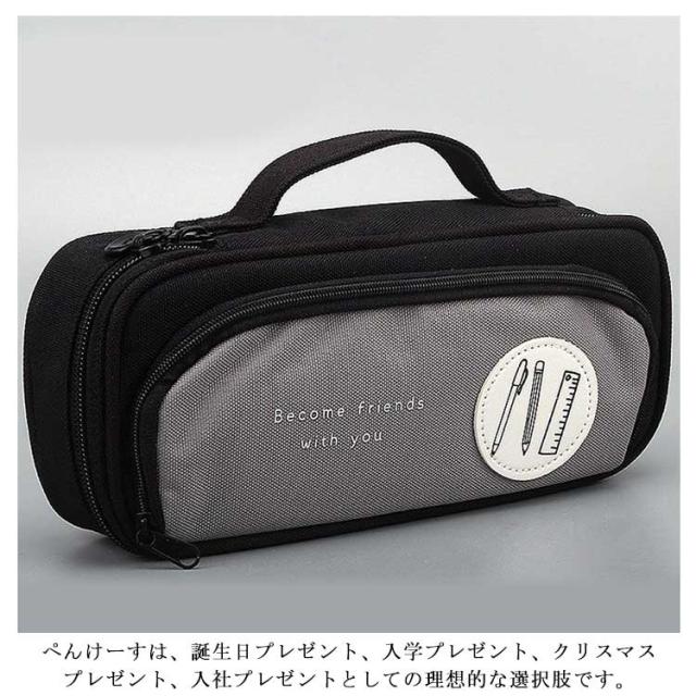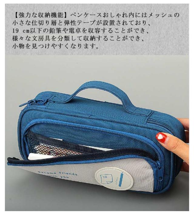 | シンプルだが単調ではないおしゃれ韓国風ペンケース 【たっぷり入る大容量】 ペン類が約40本入る大容量デザイン。消しゴム、付箋、ハサミ、定規、メジャー、修正テープなどの小物もたっぷり収容できます。 ※収容数はペンの種類によって異なります。 ? 【良質で耐久性のある材料】 筆箱シンプルは良質なキャンバス生地で作られており、精巧で耐久性があり、軽くて耐摩耗性で清潔になりやすいです。筆箱の内部の物品を損傷から保護することができます。ふでばこのファスナーは滑らかで丈夫で、長期的に使うことができます。 ? 【強力な収納機能】 ペンケースおしゃれ内にはメッシュの小さな仕切り層と弾性テープが設置されており、19 cm以下の鉛筆や電卓を収容することができ、様々な文房具を分類して収納することができ、小物を見つけやすくなります。 ? 【ペンケース以外に-用途が広い】 ペンケースシンプルは持ち運びに便利で、家庭からオフィス出張まで、持ち歩くことができます。旅行カバンや女性用ポーチとしても使えますし、USBメモリー、、目薬などを携帯することもできます。ぺんけーすは、誕生日プレゼント、入学プレゼント、クリスマスプレゼント、入社プレゼントとしての理想的な選択肢です。 | |