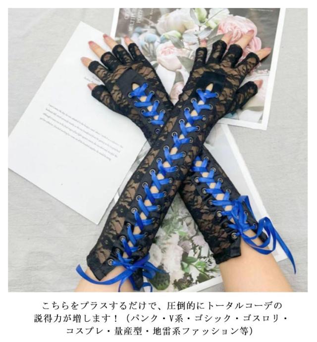 レースアップ アームウォーマー 花柄 刺繍 地雷系 量産型 ゴスロリ レース アームカバー レディース 暗黒系 手袋 指なし 腕カバー おしゃれ 可愛い 原宿系 y2k V系 ゴシック アイドル衣装 コスプレ 仮装 ハロウィン 病みかわ