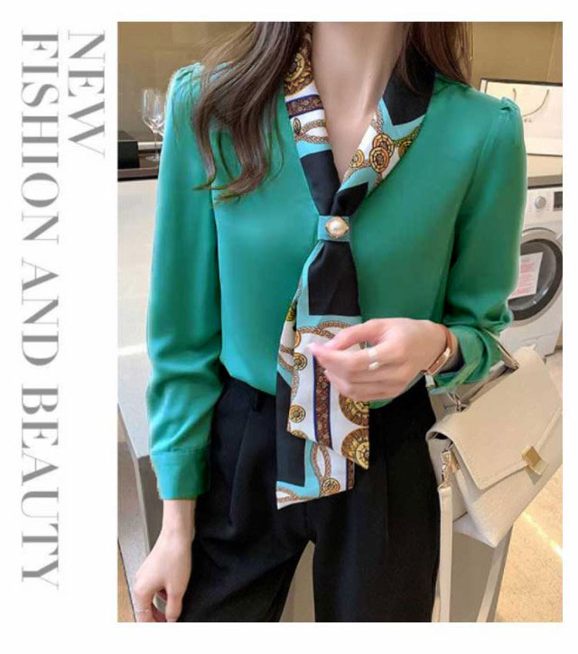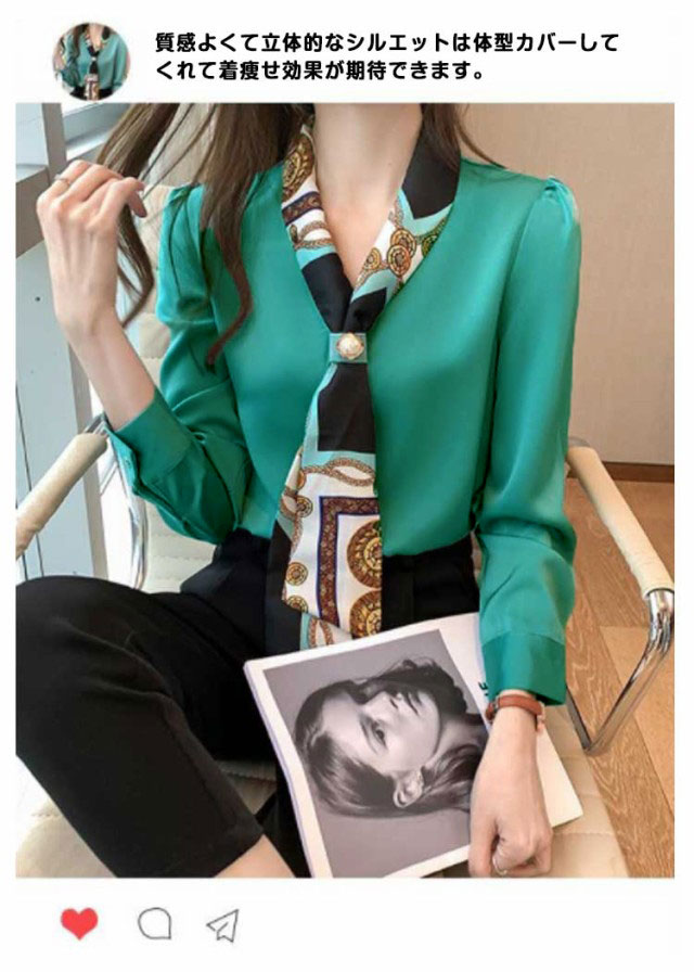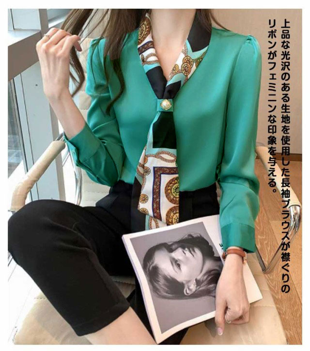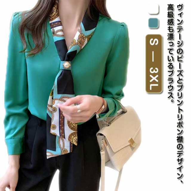 | ヴィンテージのビーズとプリントリボン襟のデザイン、高級感も漂っているブラウス。 上品な光沢のある生地を使用した長袖ブラウスが襟ぐりのリボンがフェミニンな印象を与える。 質感よくて立体的なシルエットは体型カバーしてくれて着痩せ効果が期待できます。 Vネックのデザインは、職場での普段着に最適です。 ゆったりとした袖は着心地が良く、すっきりとしていて仕事の邪魔になりません。 | |