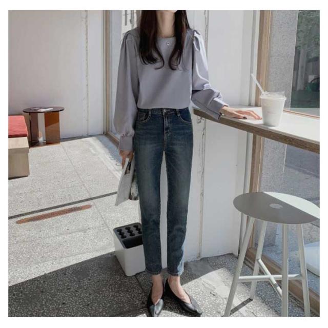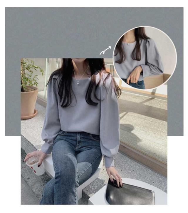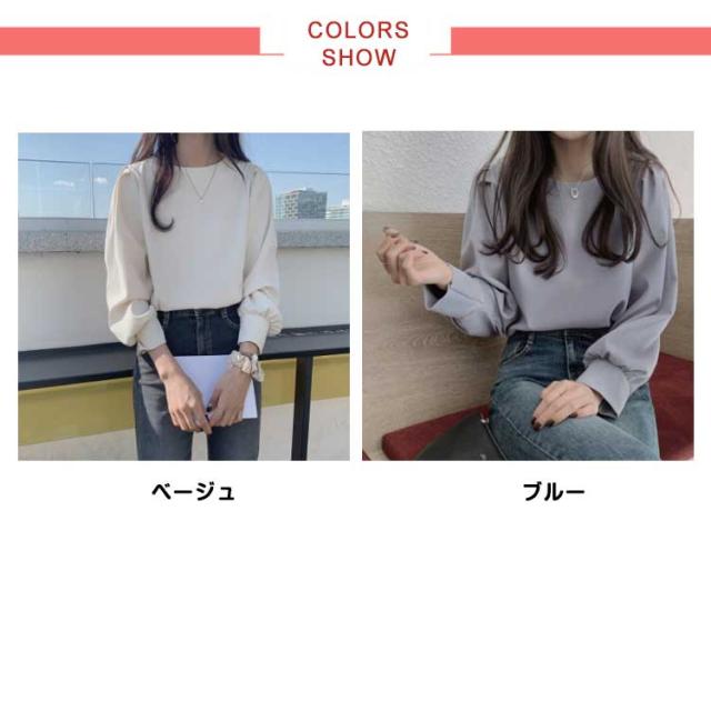 長袖 ブラウス シャツ レディース トップス オフィス カジュアル 秋 おしゃれ 長袖tシャツ パフスリーブ 薄手 丸襟 襟なし 可愛い ゆったり 秋物 トップス キレイめ 無地 透けない カットソー カジュアル 通勤 大人 オフィス 韓国