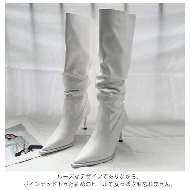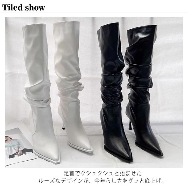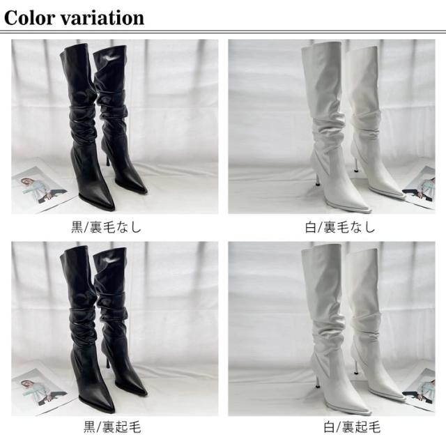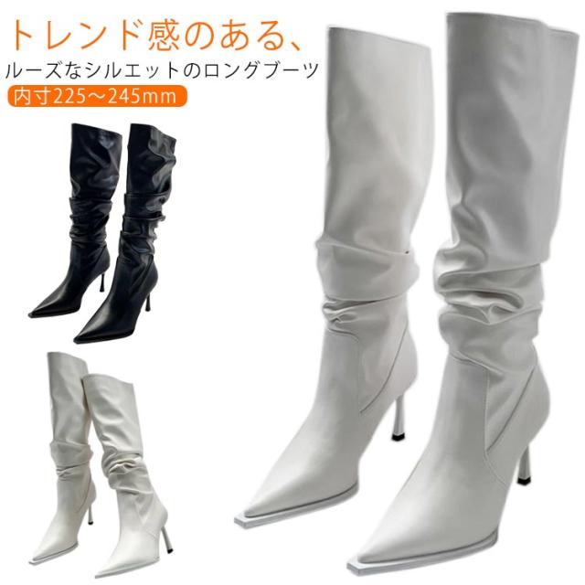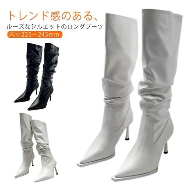ロングブーツ レディース 美脚ブーツ ハイヒール ルーズブーツ くしゅくしゅブーツ ロングブーツ 美脚 春秋 冬 裏起毛 防寒 合皮 ポインテッドトゥ ロング丈 歩きやすい 大人 女性 レザー 柔らかい ロング 無地 シンプル 送料無料