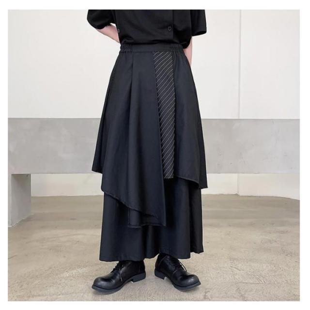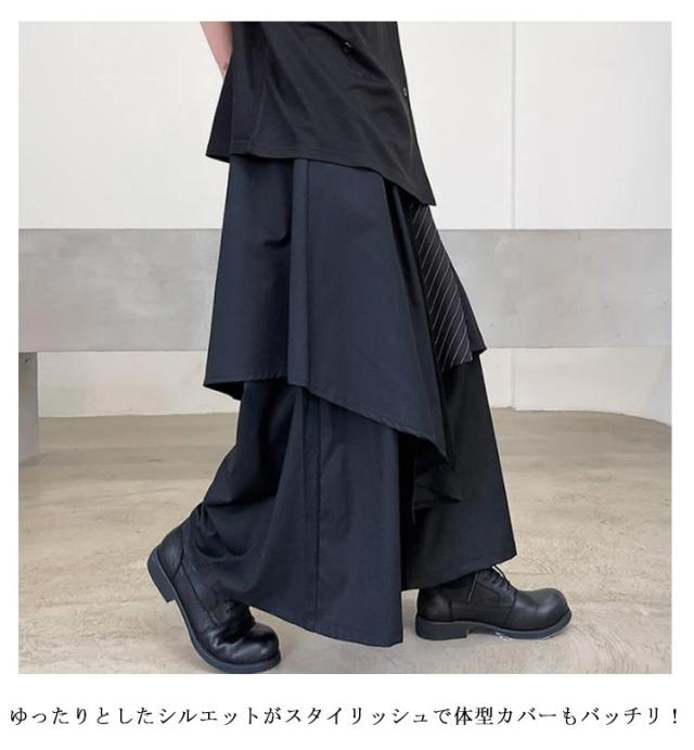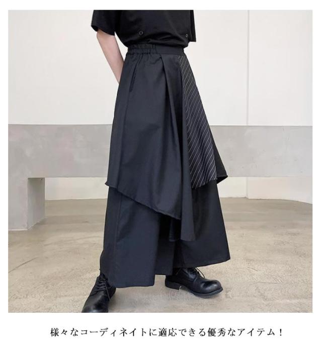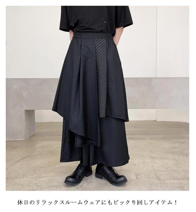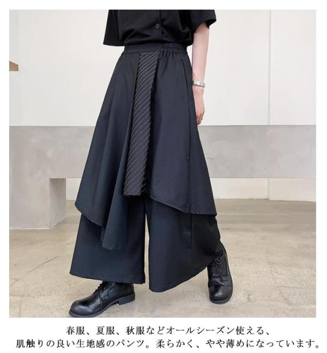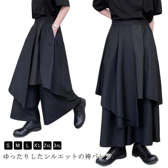 袴パンツ モード系 ワイドパンツ メンズ サルエルパンツ 春 夏 ガチョウパンツ ウエストゴム ゆったり 和風 和式ズボン アシンメトリー ビッグシルエット 大きいサイズ ダンス衣装 ボリューム フレア サルエル ユニセックス 原宿系