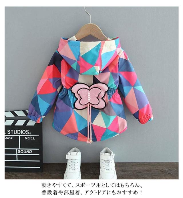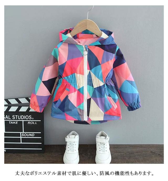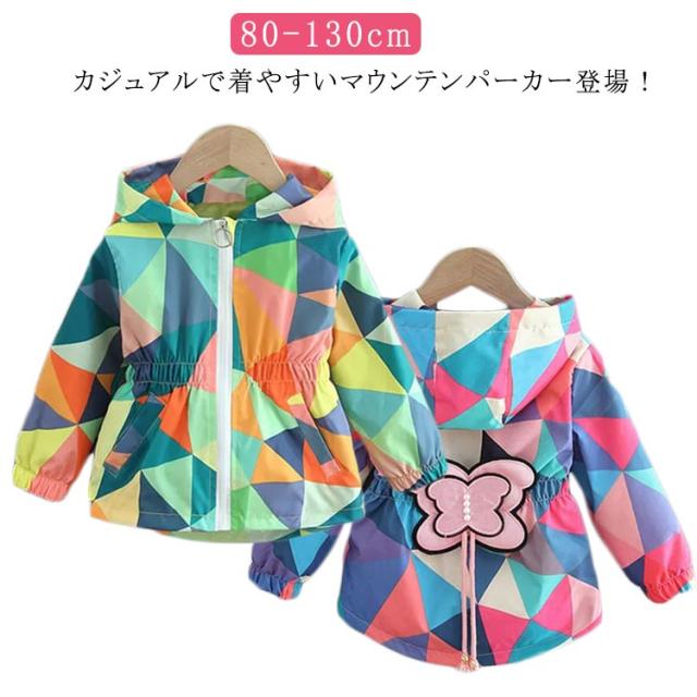 マウンテンパーカー 女の子 ウィンドブレーカー 春 秋 アウター 可愛い 薄手 キッズ ジップアップ ジャケット 子供服 女児 ジュニア服 フード付き こども おしゃれ ゆったり トップス 可愛い 防寒 防風