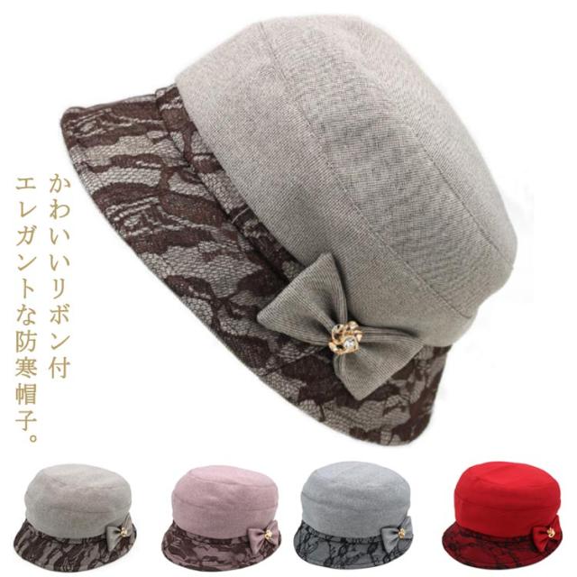 秋 冬 帽子 レディース ハット シニア ミセス 女性 ぼうし レース リボン おしゃれ 春 秋冬 防寒帽子 あったか帽子 綿 厚め 防風 防寒 暖か あったか 祖母 お母さん おばあちゃん 高齢者 50代 60代 70代 80代 母の日 敬老の日 【送料無料】