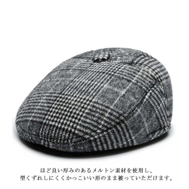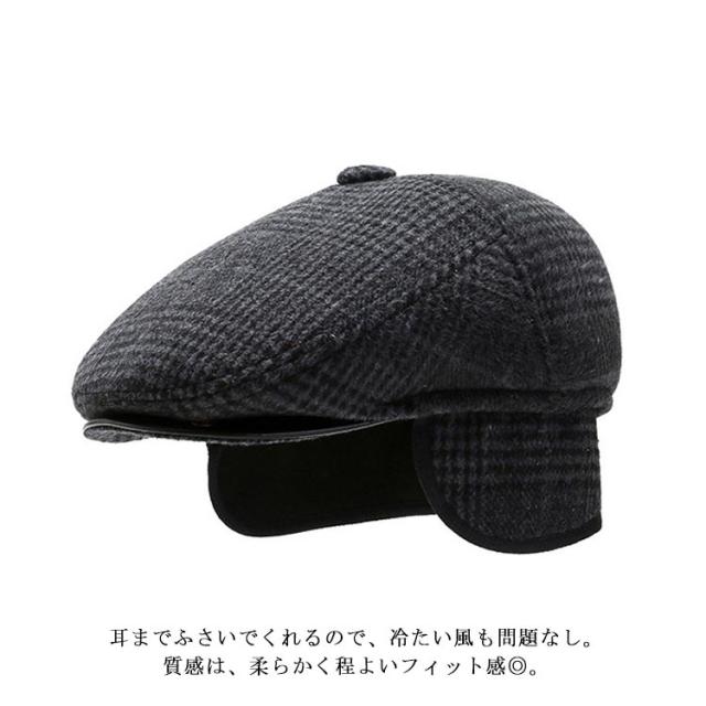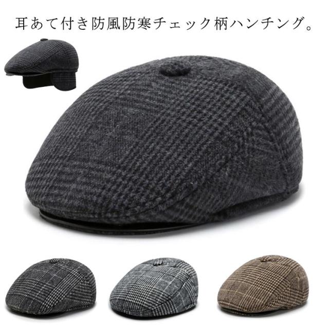 ハンチング メンズ 帽子 耳あて付き チェック柄 シニア 男性 おじいちゃん 高齢者 秋冬 防寒帽子 あったか帽子 ウール メルトン 厚手 防風 防寒 暖かい 紳士帽子 ゴルフ 帽子 父の日 敬老の日 プレゼント ギフト 孫 40代 50代 【送料無料】