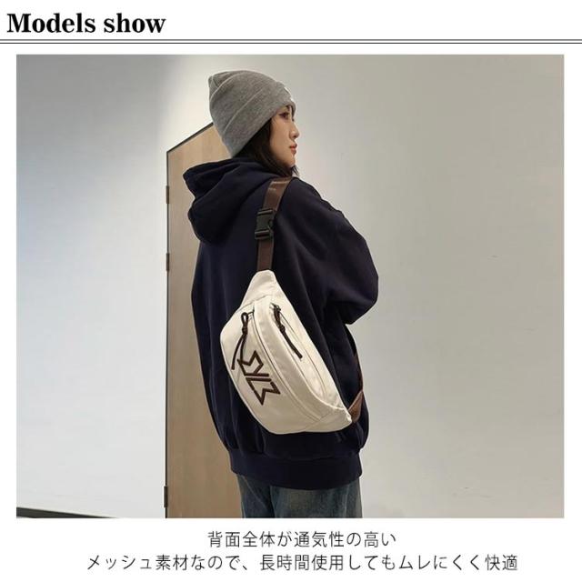 | スタイリッシュでおしゃれなフォルムのボディバッグ 背面全体が通気性の高いメッシュ素材なので、長時間使用してもムレにくく快適 クッション性もあるので、中の荷物が背中に当たる不快感を軽減。 荷物の負担が肩に集中しがちなワンショルダータイプでも極厚のパッド入りなら安心。 普段使いはもちろん、通学・アウトドアなど色々なシーンで活躍 男も女もサマになる絶妙サイジング!大きすぎず小さすぎない。シンプルな作りで、どんな服装にも合わせやすいスタイリッシュでおしゃれなフォルムのボディバッグ | |