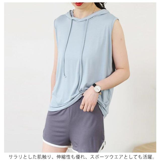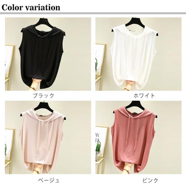 カットソー レディース キャミソール お洒落 トップス ノースリーブパーカー 春 レディース フード付きtシャツ 夏 フード付き ベスト 吸汗速乾 プルオーバー ジレ ひんやり 薄手 インナー 袖なし スウェット 着痩せ レイヤード カジュアル 可愛い 大人 秋 夏