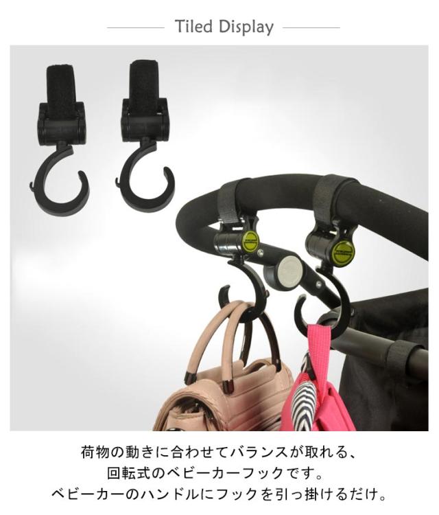回転式 耐荷重15kg ベビーカー 2個セット バギーフック フック ベビーカーフック 荷物かけ 荷物フック マルチフック 便利グッズ アクセサリー ベビーカー 車椅子 ペットカート 自転車