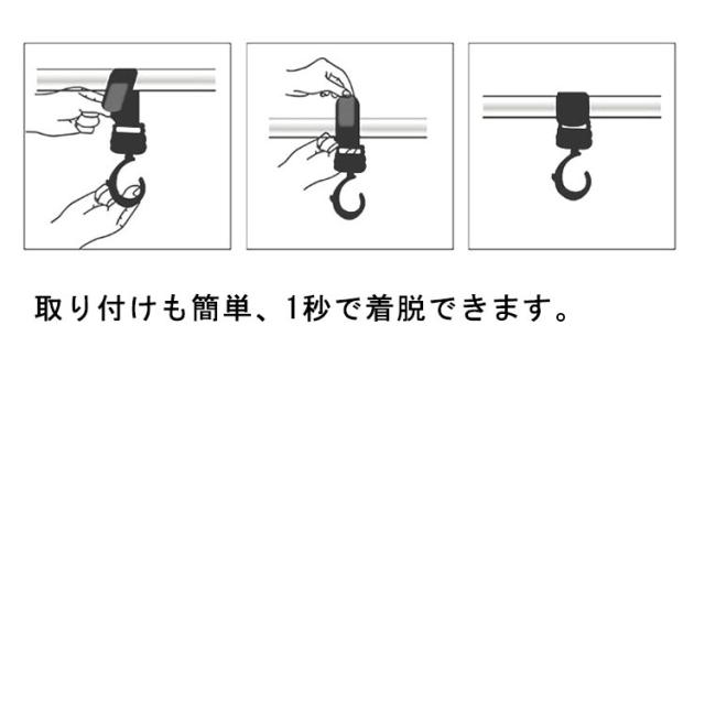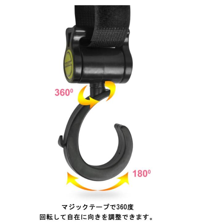 | 荷物の動きに合わせてバランスが取れる、回転式のベビーカーフックです。 ベビーカーのハンドルにフックを引っ掛けるだけ。 ABSプラスチックフックで粘り強さ、耐久性があります。 マジックテープで360度回転して自在に向きを調整できます。 取り付けも簡単、1秒で着脱できます。 ベビーカーのみならず、車椅子、ペットカート、自転車、キッチンなどなど、あらゆる場面で活躍できる優れものです! | |