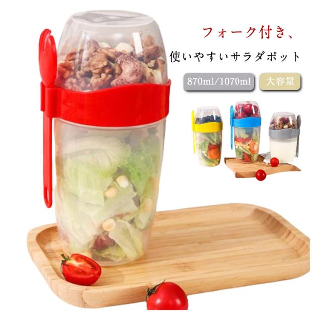 サラダ 1070ml フォーク付き 弁当箱 お弁当 870ml 2段 サラダポット お弁当 サラダ 食器付き 容器 クリア スリム 麺 シェイクサラダポット 大容量 お弁当箱 子供 大容量 弁当箱 大人 メンズ レディース ピクニック サラダカップ 通勤 通学 軽い 使いやすい