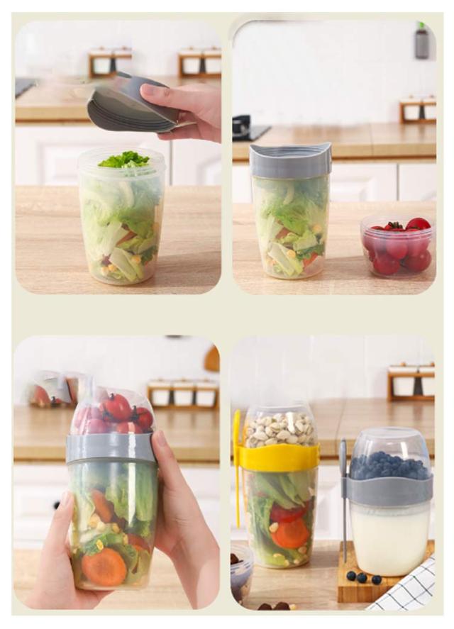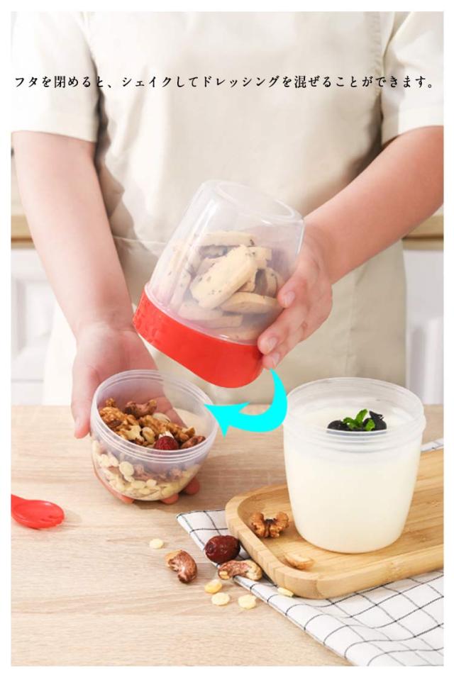 | フォーク付き、使いやすいサラダポット ソースカップとフォークが付属しています。 容器の上部にはドレッシングを入れるカップが付いています。 安心して使用できる素材で作られています。 フタを閉めると、シェイクしてドレッシングを混ぜることができます。 お弁当袋に入れやすいサイズです。 ピクニックや外出先での使用に最適です。 手で持ちやすい、便利でスタイリッシュなデザインです。 お弁当箱としても使用できます。 カバンに入れて持ち運ぶことができます。 | |