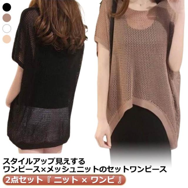 | 2点セット『 ニット × ワンピ 』 スタイルアップ見えするワンピース×メッシュニットのセットワンピース 落ち感のあるデザインでボディラインを拾いにくくシルエットを綺麗に見せる 合わせるだけでコーディネートが完成するのはもちろん、それぞれ単品でも着回せてデイリーに活躍 | |