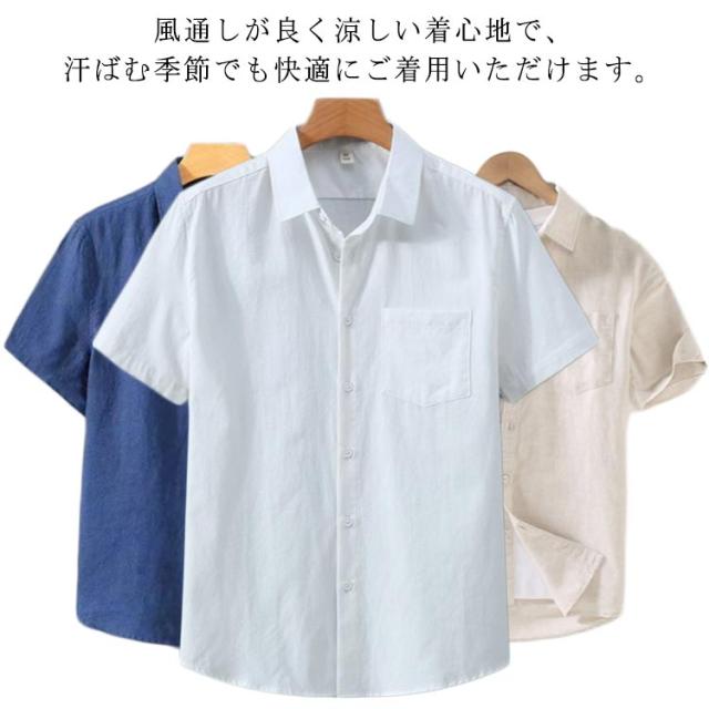 メンズシャツ 半袖シャツ メンズ 胸ポケット リネンシャツ 綿麻 半袖 カジュアルシャツ ビジネス ゆったり 大きいサイズ 4L 5L 6L夏物 父の日 ギフト シンプル 無地 送料無料