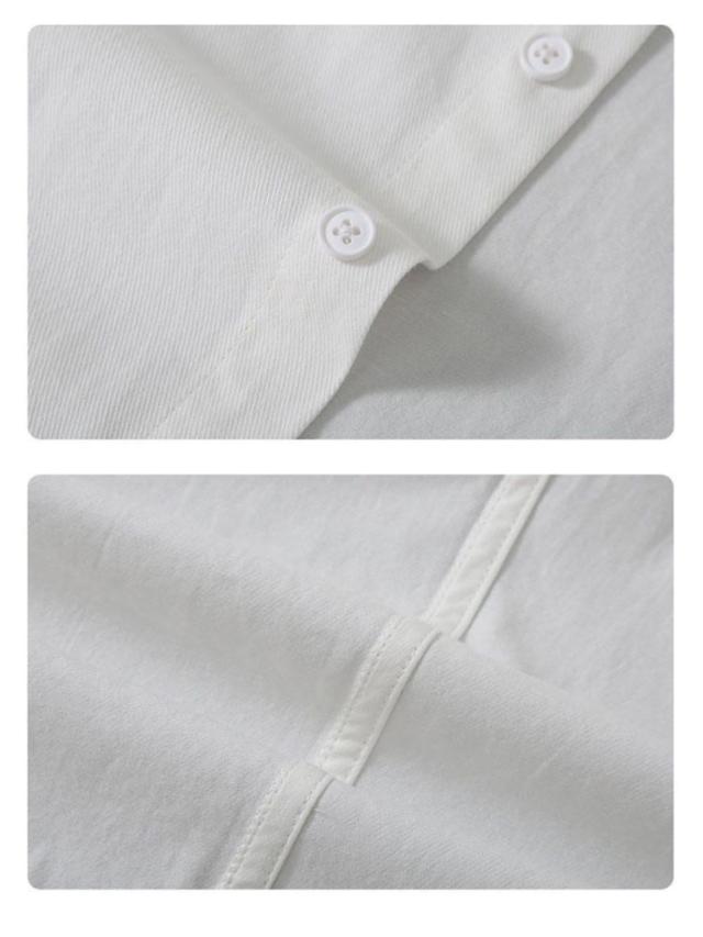 | 風通しが良く涼しい着心地で、汗ばむ季節でも快適にご着用いただけます。 一枚で着られるシャツとしてだけでなく、夏場にはエアコンの効いた室内での羽織りものとしても重宝します。 かっちりとしすぎず、サンダルとも相性が良いデザインで、リラックス感のある着こなしが楽しめるアイテムです。 | |