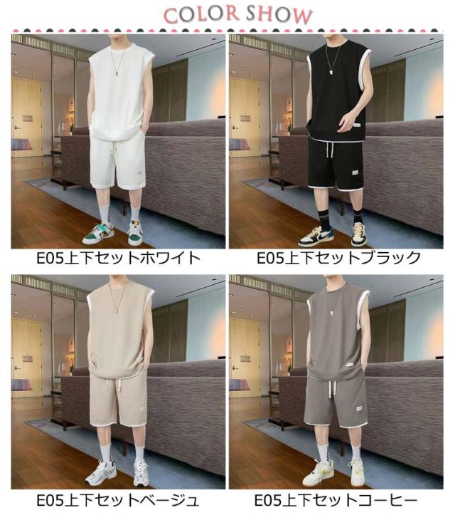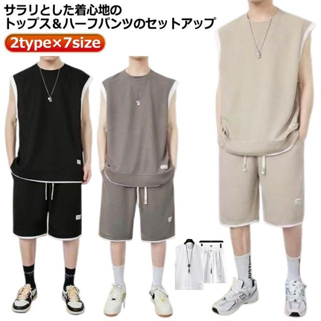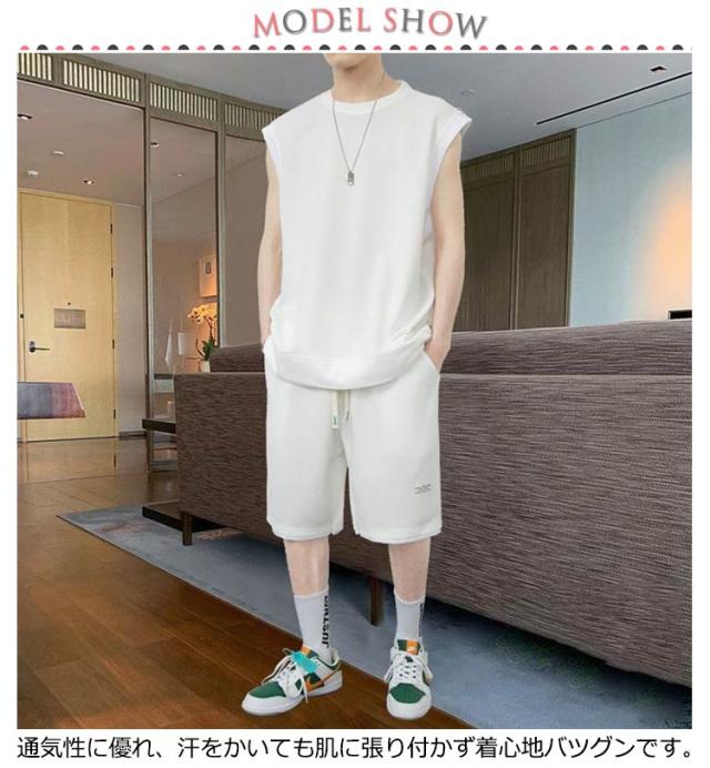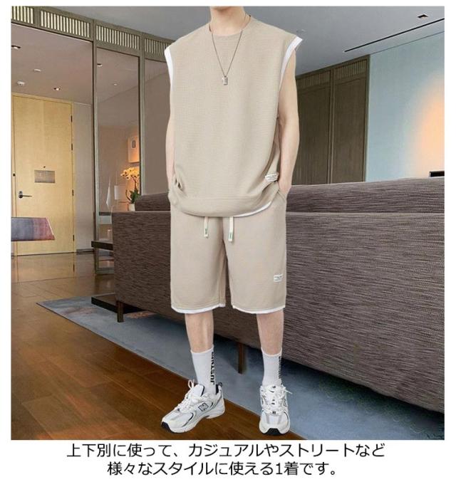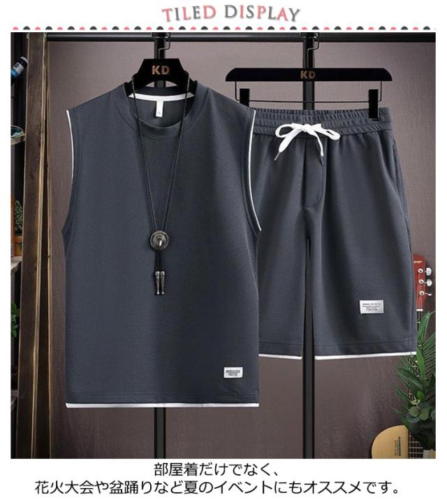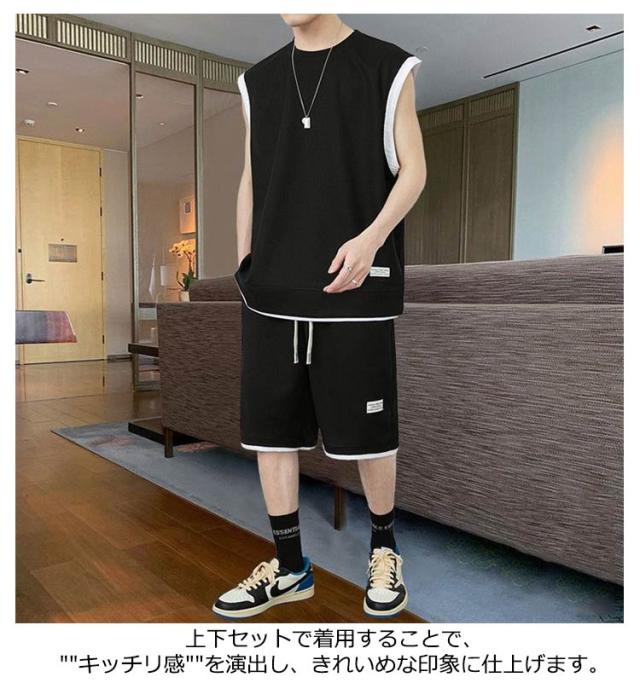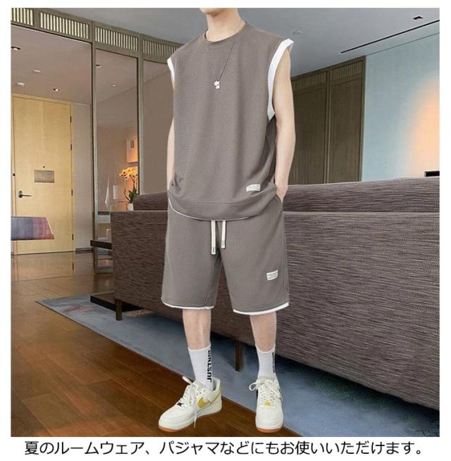 重ね着風 メンズ 上下セット サマー ジャージ 上下 タンクトップ スウェット上下セット tシャツ セットアップ レディース ノースリーブ おしゃれ 重ね着風 ジュニア 半ズボン 運動着 ハーフパンツ 夏 薄手 凉しい