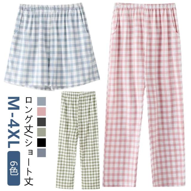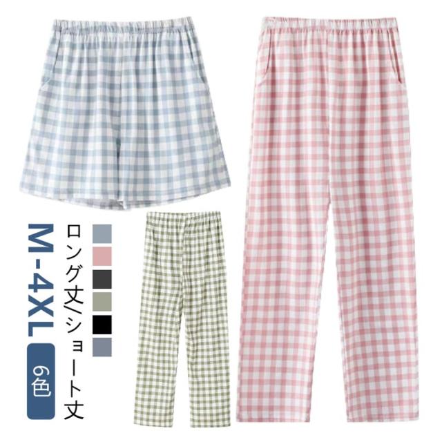 [M-4XL] ロングパンツ おしゃれ 夏 ステテコ コットン [M-4XL] チェック 冬 綿 秋 大きいサイズ 春 ショートパンツ メンズ 部屋着 薄手 ルームパンツ ロング丈 ショート丈 ルームウェア ポケット 涼しい ゆったり ズボン 短パン 夏用 肌着 男女兼用