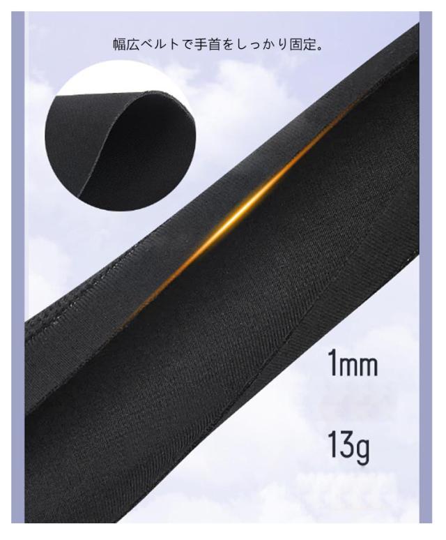 | サイズについての説明 | フリーサイズ:親指周り5.5(cm)、手首周り14-20(cm) 重量:約13g/枚 ※サイズや重量は個体差により若干の誤差があります。 |