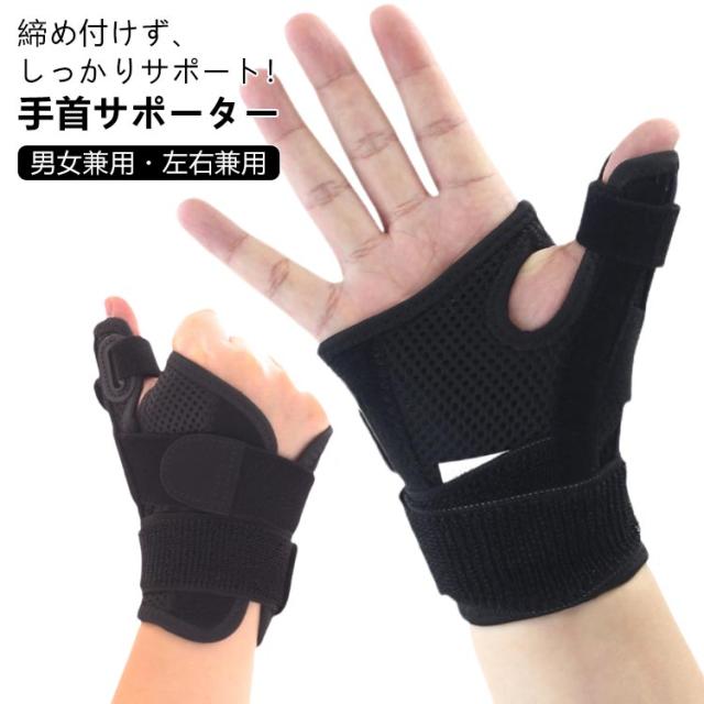 親指 【2枚セット】 指用サポーター 男性 サポーター 女性 手首 親指サポーター 手首サポーター 通気性 医療用 メッシュ 男性用 薄手 腱鞘炎 【2枚セット】 ブラック 女性用 おしゃれ 痛い 固定 スポーツ テニス グローブ マジックテープ