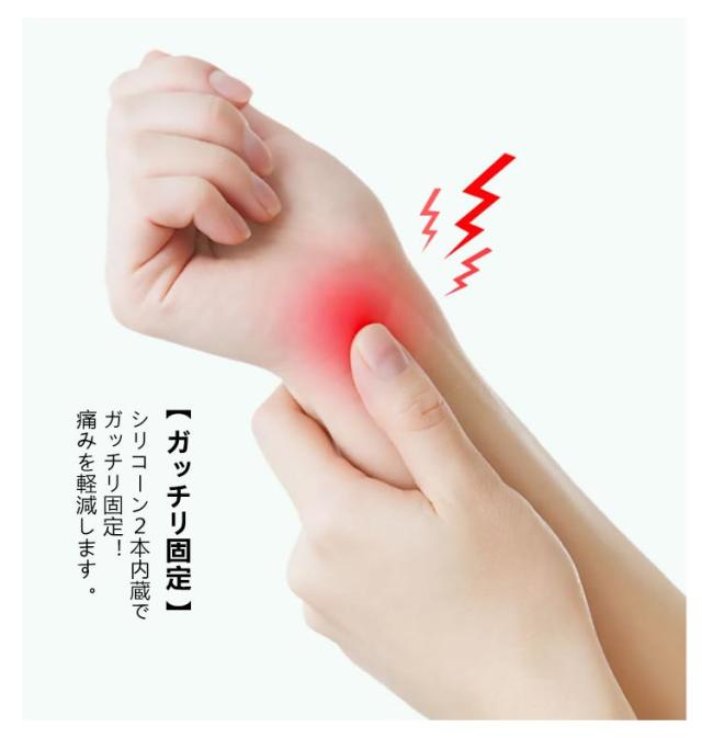| 締め付けず、しっかりサポート! 手首サポーター 男女兼用・左右兼用 腱鞘炎、捻挫の手首を固定でき、運動中手首にサポート力を提供でき、固定感も保護性も抜群である手首保護用サポーターです。 【ガッチリ固定】 シリコーン2本内蔵でガッチリ固定! 痛みを軽減します。 【3本のベルトで調整!】 お好みのキツさに調整できる圧倒的フィット感! 【さまざまなシーンで】 スポーツやデスクワークや育児・家事、 さまざまなシーンで活躍します。 【通気性もOK】 メッシュ素材を使用しており、 通気性も良いです。ムレません。 洗濯も大丈夫です。 【左右兼用・フリーサイズ】 どのサイズの手にも対応します。 左右兼用デザインで、これ1個でOKです。 | |
