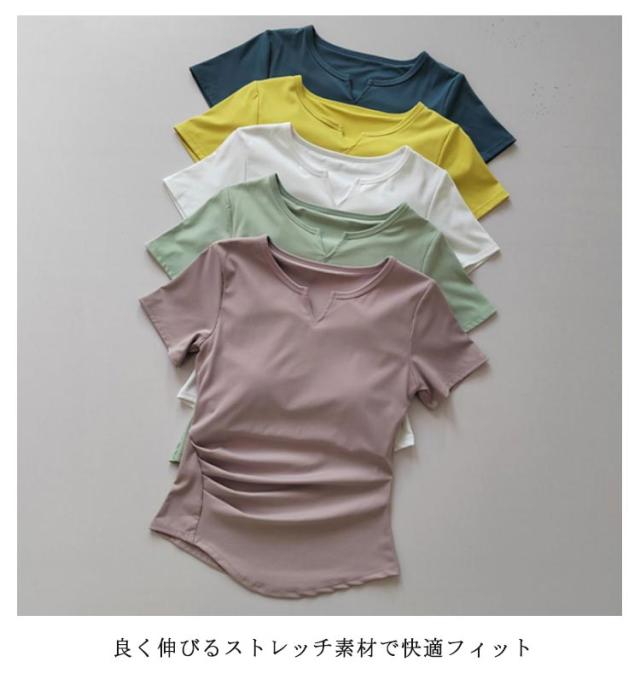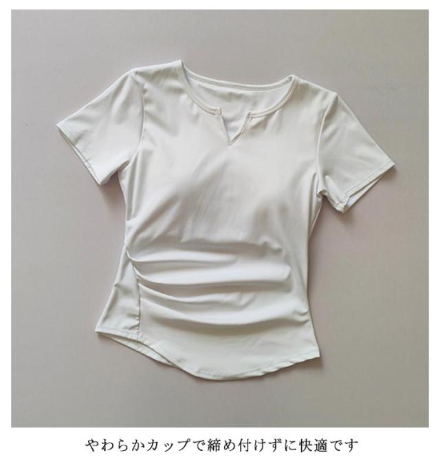 シンプル ウェア トップス ピラティス 半袖ヨガトップス ストラッピー ヨガウェア ヨガウェア かわいい 無地 へそ出し ダンス スポーツウェア フィットネス ホットヨガ ジムウェア パッド付き トレーニング ウェア 伸縮性