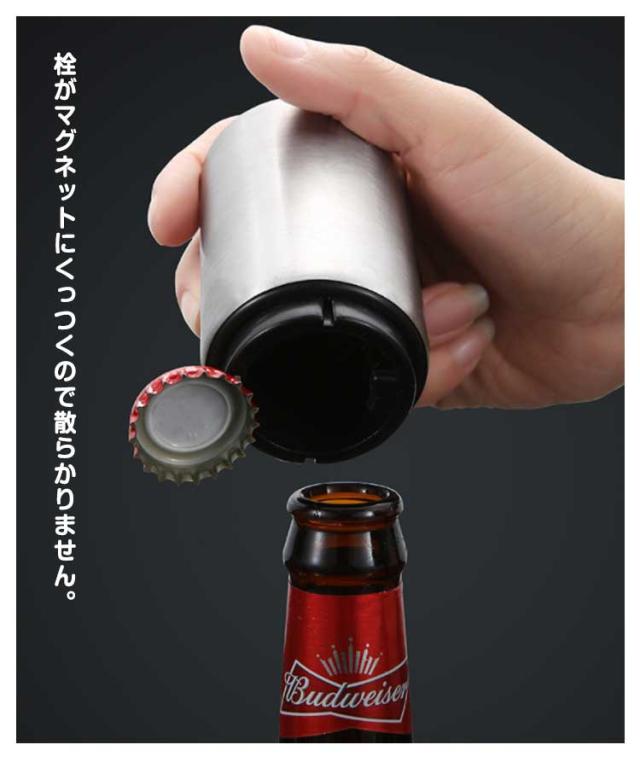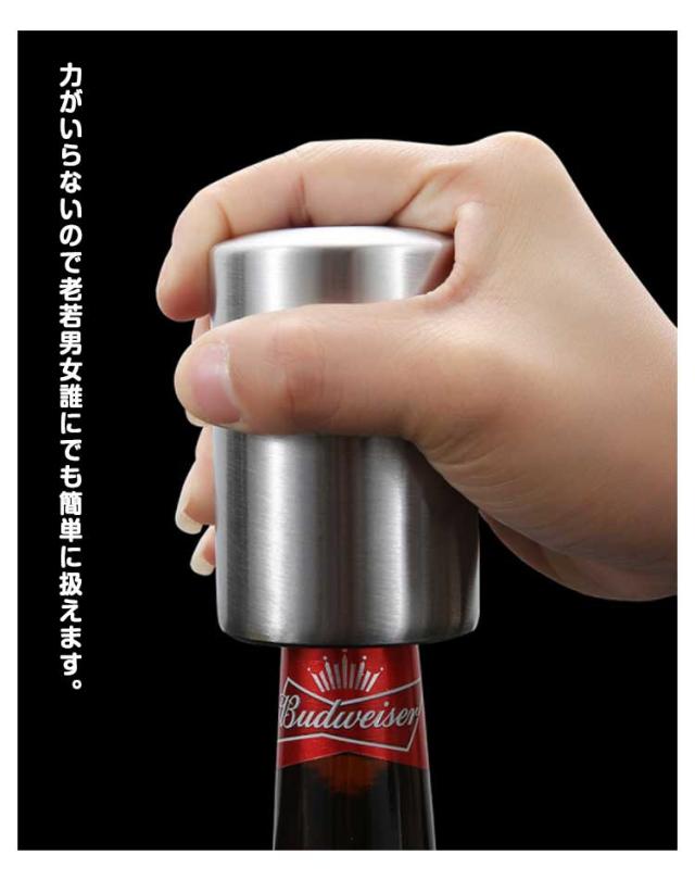 ステンレス製 栓抜き ワンタッチ ビール栓抜き ボトルオープナー 簡単 コンパクト 軽量 省力 便利グッズ