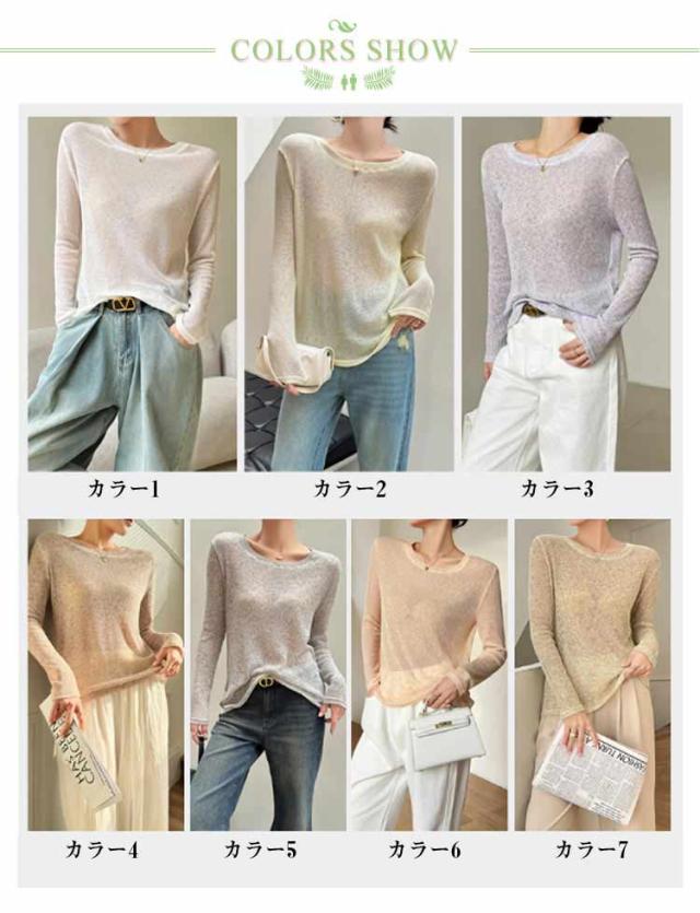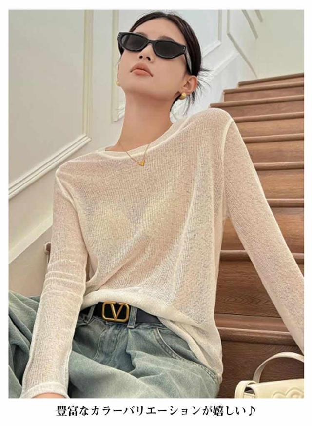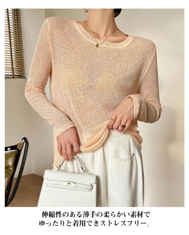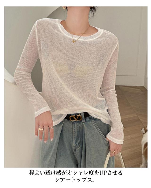 トップス シアーロンT カラフル全7色展開 シアーロングスリーブTシャツ シアー ロンt 紫外線対策 重ね着 長袖 レディース シアートップス 送料無料 シアーカットソー インナー クルーネック おきゃれ 透け感 シースルー UV