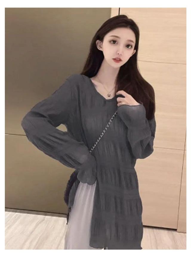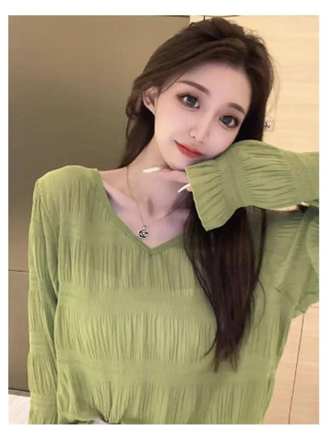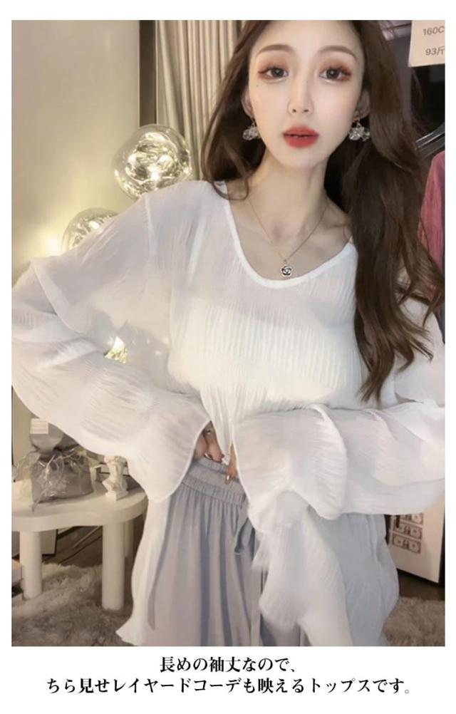 Vネック 長袖 シアートップス トップス 二の腕カバー シースルー レイヤード インナー シアーインナー ブラウス シアートップス シアー トップス シャツ レディース インナー 透け感 薄手 重ね着 無地 春 夏 10代 20代 30代 40代