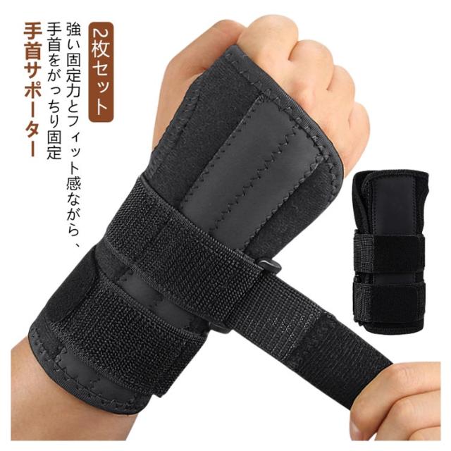 女性 女性用 手首 男性 手首サポーター 調整可 サポーター 医療用 メッシュ 通気性 薄手 スポーツ テニス 黒 【2枚セット】 ブラック 強度 男性用 サイズ 腱鞘炎 【2枚セット】 金属プレート内蔵 グローブ プロテクター 橈骨 骨折 後
