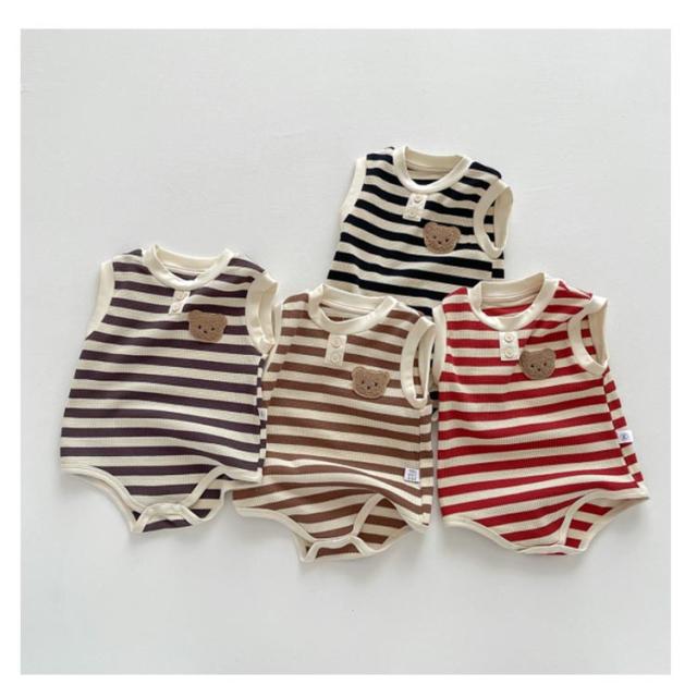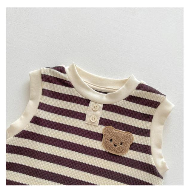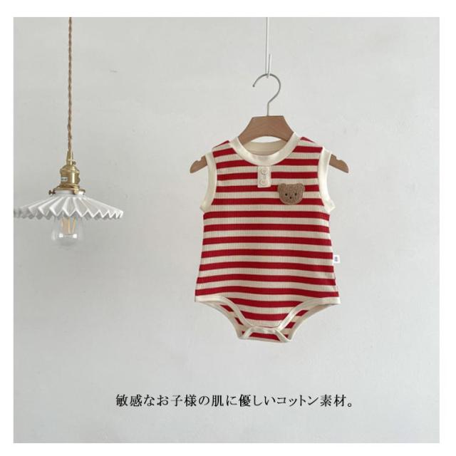 男の子 ロンパース タンクトップ 女の子 おしゃれ 子供服 ボディースーツ ノースリーブ 赤ちゃん ベビー ベビー 肌着 下着 ストレッチ 綿 ベビー服 夏 可愛い くま ボーダー柄 新生児 カバーオール 子供パジャマ ルームウェア 通園