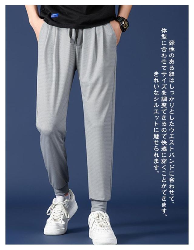 夏 速乾 メッシュ ロングパンツ カジュアル 無地 パンツ 軽量 メンズ スポーツパンツ ストレッチパンツ 涼しい パンツ 春 秋 伸縮性 ウエストゴム 通気性抜群 ズボン 大きいサイズ ランニングパンツ ジョガーパンツ