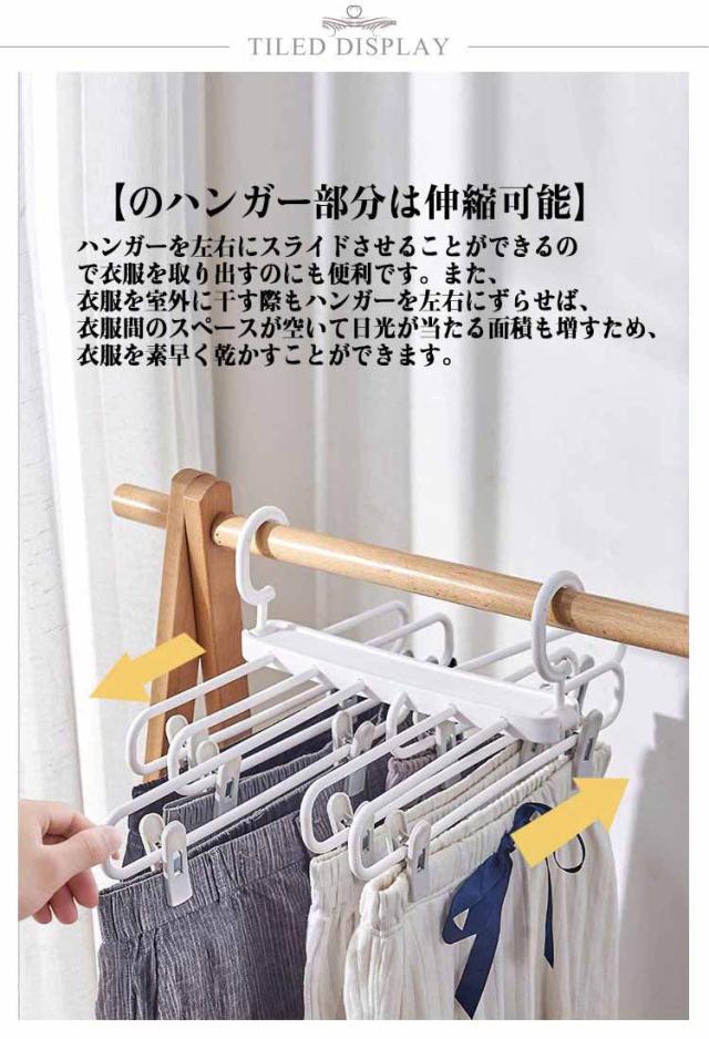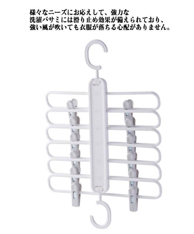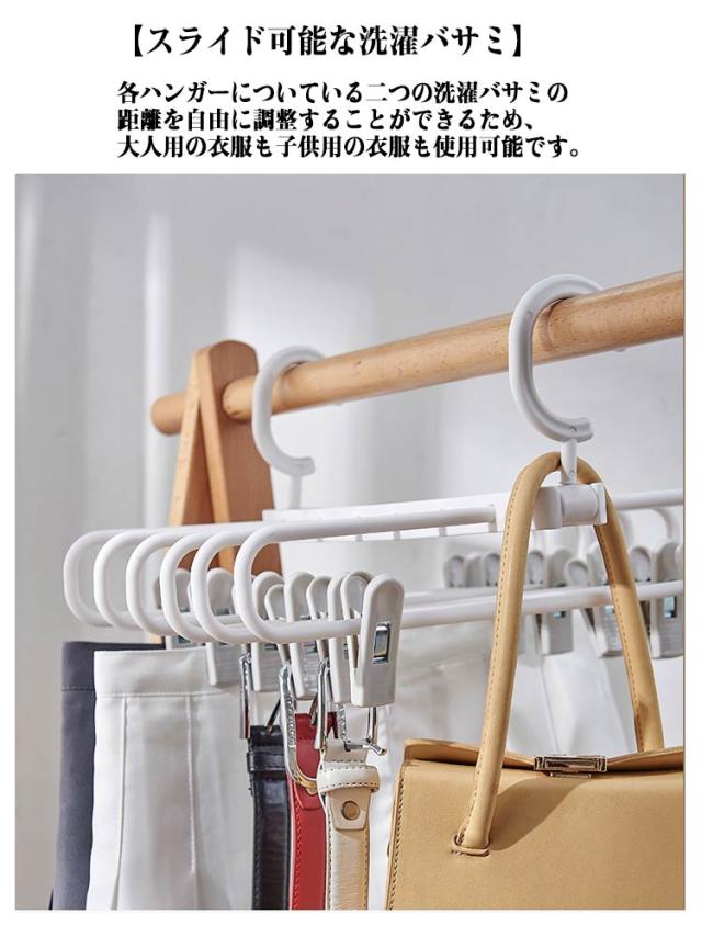 | 洋服収納多機能 6連ズボンハンガー。2本セット! 【抜群の収納力】マルチハンガーロッド設計により6着相当の衣服を掛けることができ、収納スペースを十分に活用することが可能です。スカートやパンツ、マフラー、タオル、水着、下着など様々な小型衣類を干すことができます。 【優れた耐荷重】良質なPP素材で作られているため、厚みがあり、長期間の使用にも耐えられます。最大荷重5キロ。 【多機能ダブルフック】横掛けと縦掛けの二通りの方法で使用可能で、融通性と利便性を兼ね備えています。縦に使用すればスペースをより有効活用できます。 【のハンガー部分は伸縮可能】ハンガーを左右にスライドさせることができるので衣服を取り出すのにも便利です。また、衣服を室外に干す際もハンガーを左右にずらせば、衣服間のスペースが空いて日光が当たる面積も増すため、衣服を素早く乾かすことができます。 【スライド可能な洗濯バサミ】各ハンガーについている二つの洗濯バサミの距離を自由に調整することができるため、大人用の衣服も子供用の衣服も使用可能です。様々なニーズにお応えして、強力な洗濯バサミには滑り止め効果が備えられており、強い風が吹いても衣服が落ちる心配がありません。 | |