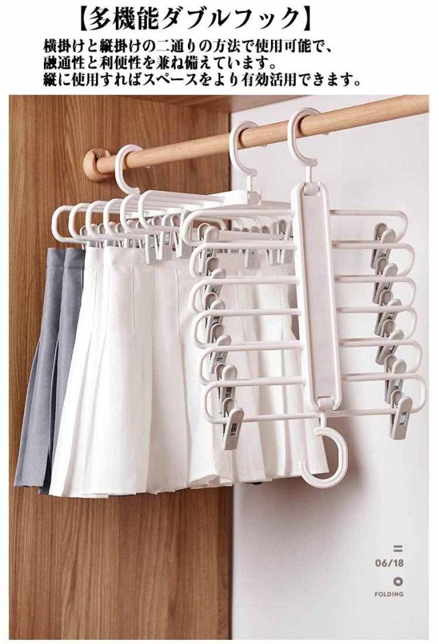 多機能ハンガー 2本セット スラックスハンガーフック 6連 ハンガーラック 吊り下げ クローゼット収納 吊り下げ収納 ハンガー ズボンハンガー 6段 洋服収納 便利 省スペース 垂直 折り畳み ネクタイ パンツ スカート 2本セット ストールハンガー つり下げ 衣類