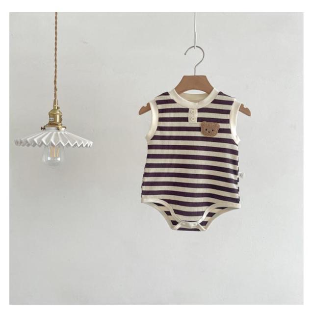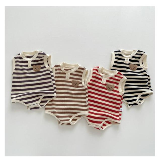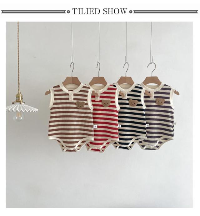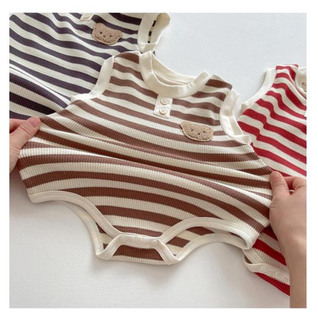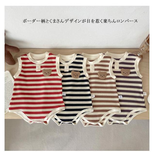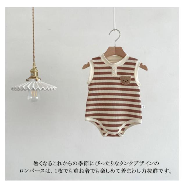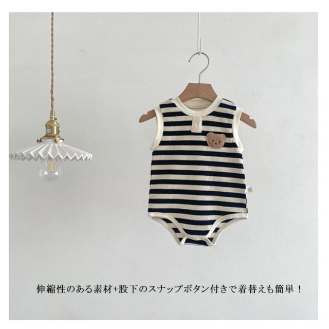 ベビー 子供服 夏服 女の子 ロンパース タンクトップ ボディースーツ 男の子 綿 下着 赤ちゃん ストレッチ 肌着 ルームウェア おしゃれ ベビー服 夏 可愛い くま ボーダー柄 新生児 カバーオール 子供パジャマ ベビー 通園
