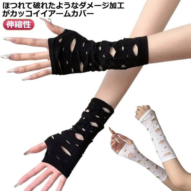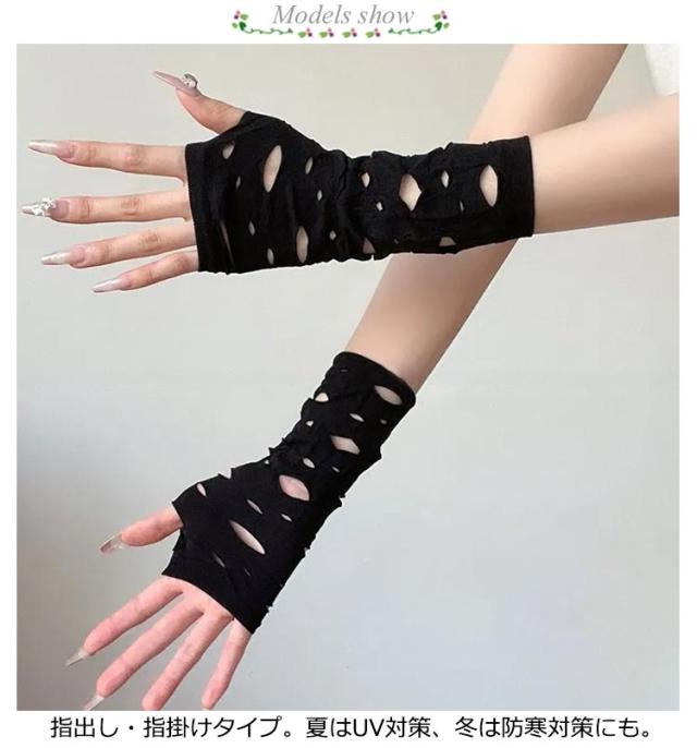 アームカバー アームカバー 破れ 指なし ダメージ加工 ほつれ 地雷系 韓国 量産型 レディース アームウォーマー 伸縮性 手袋 病みかわ アイドル衣装 パンク ステージ衣装 腕カバー コスプレ原宿系 y2k V系 ゴシック ゴスロリ 仮装