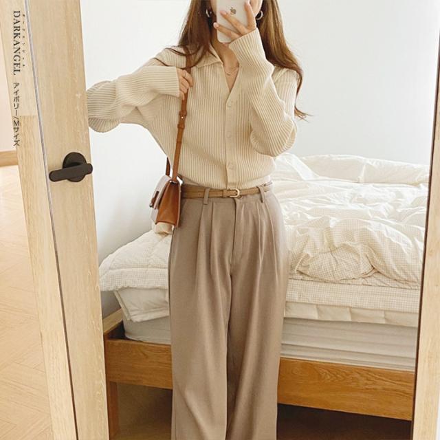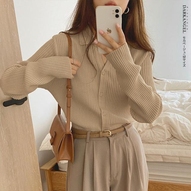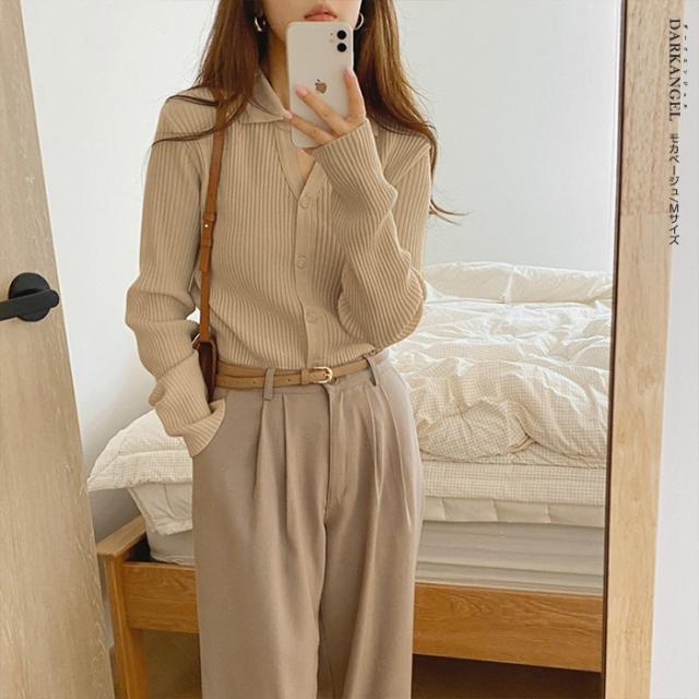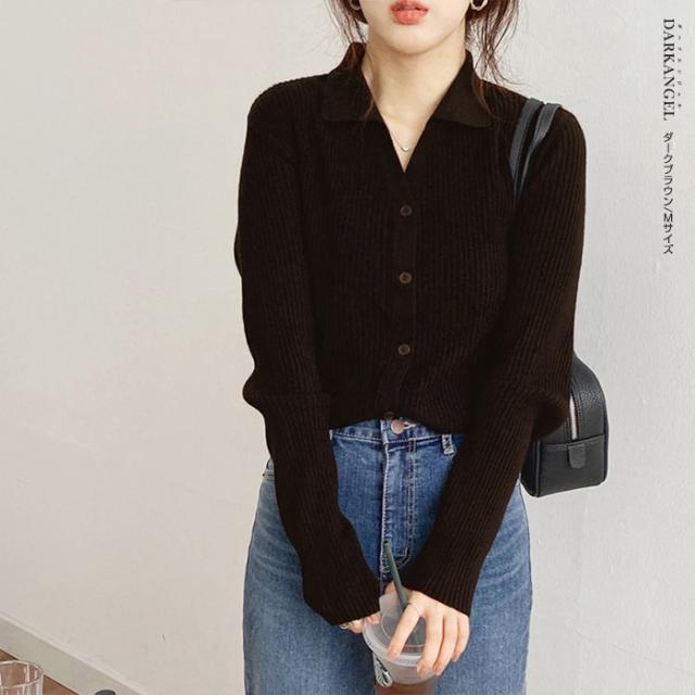 【 襟付きリブニットカーディガン 】