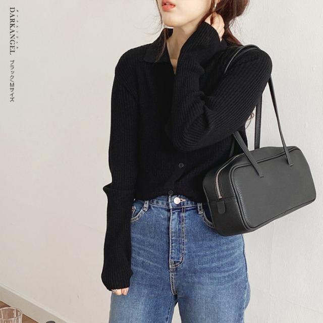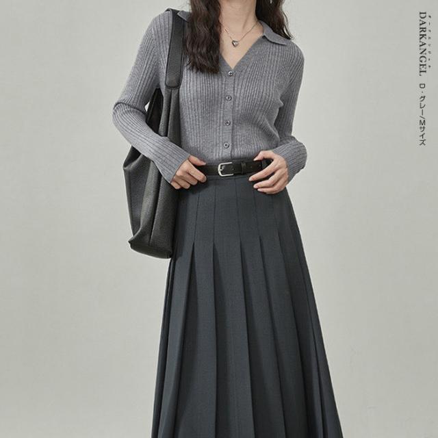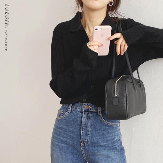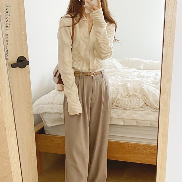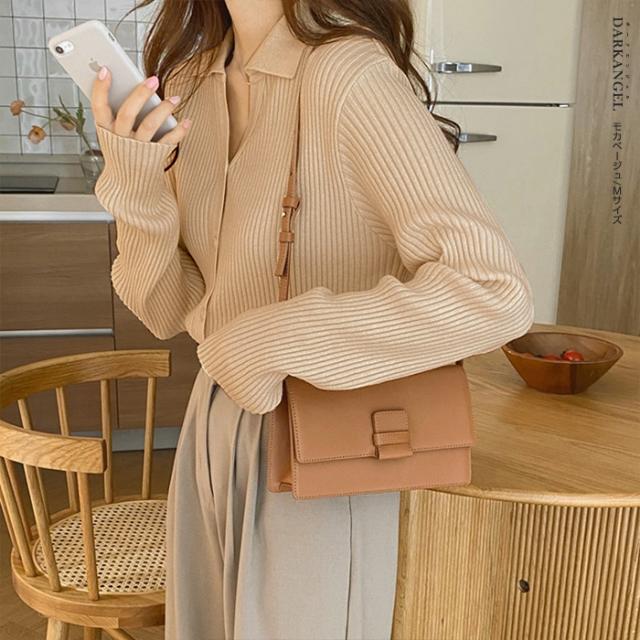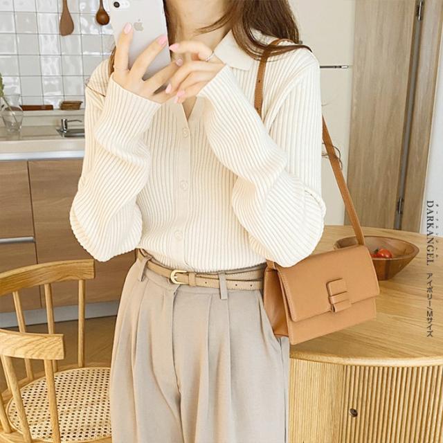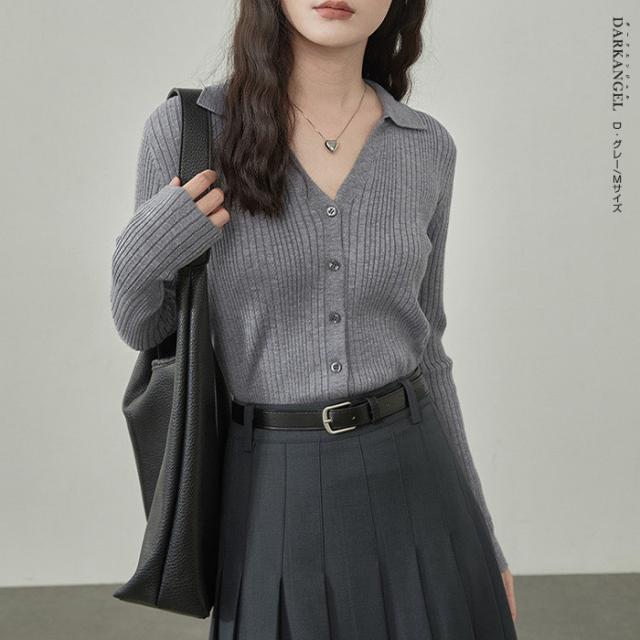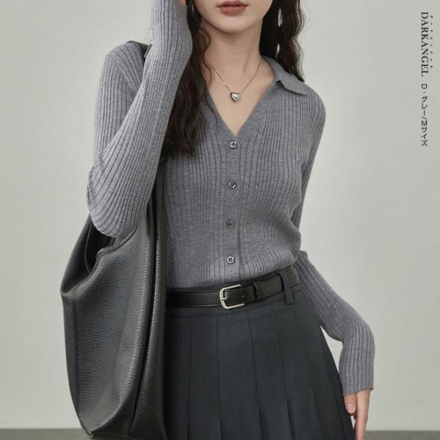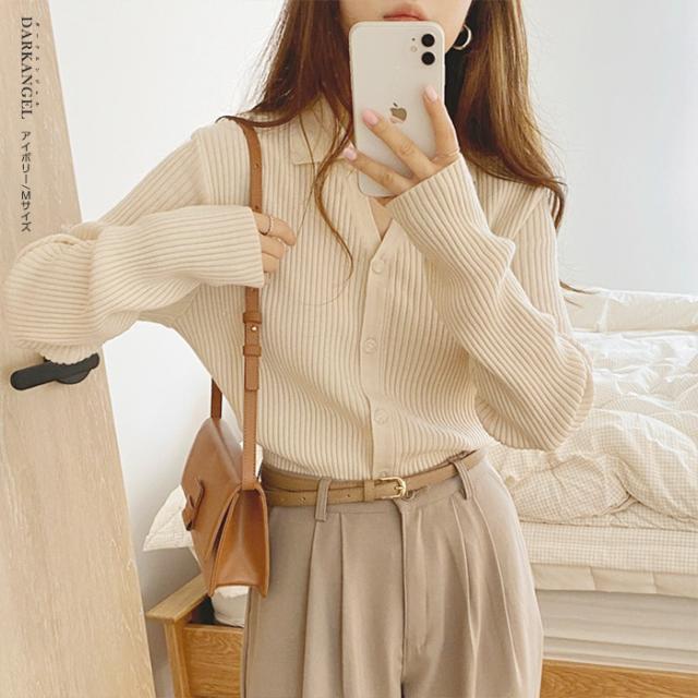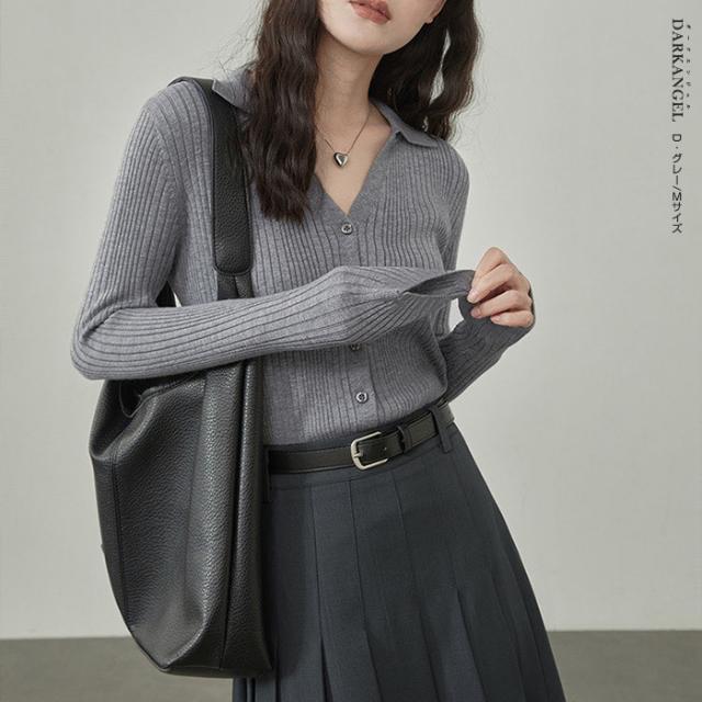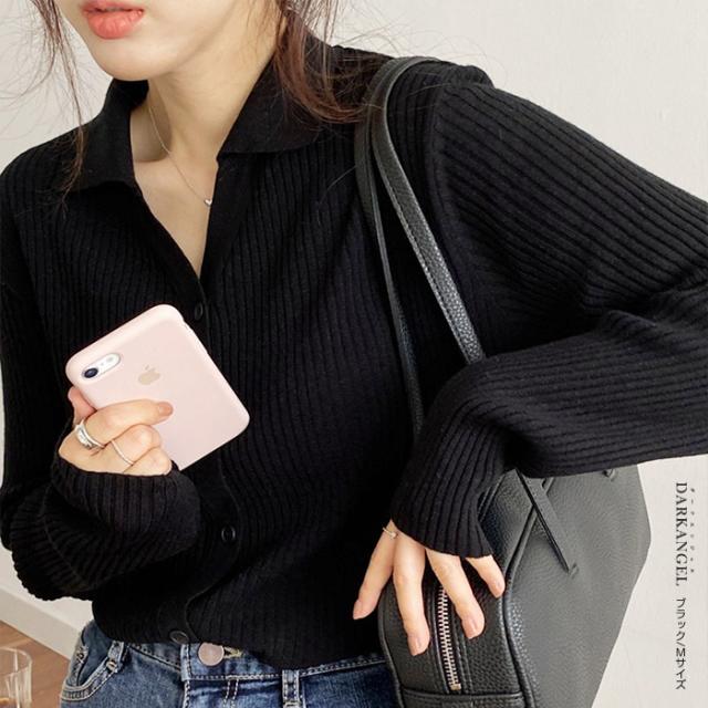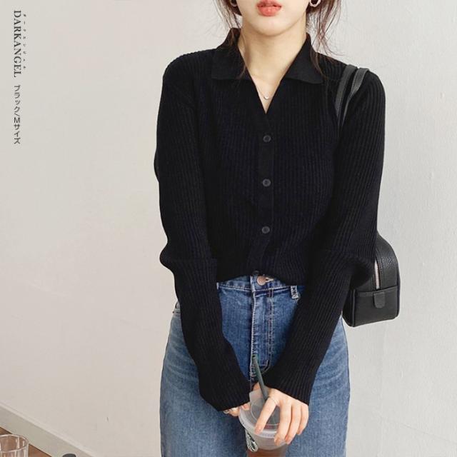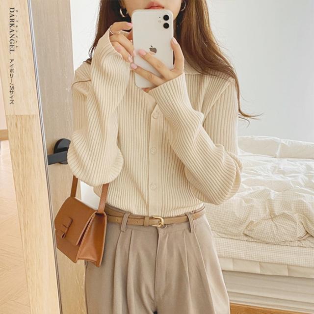 33%OFFクーポン!トップス ニット リブニット 襟付き カーディガン ボタン レディース 秋 春 vネック 襟付き リブ ニット 長袖 ブラック オフホワイト 【 襟付きリブニットカーディガン 】 ダークエンジェル 冬新作 ●即納●