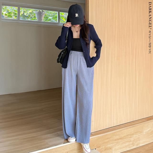 洗練されたシンプルさと快適さを兼ね備えたリブニットカーデ。