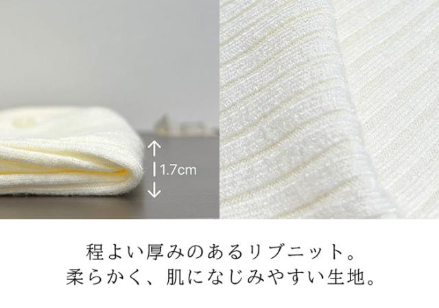 柔らかく伸縮性のあるリブニット素材が、体のラインに優しくフィットし、