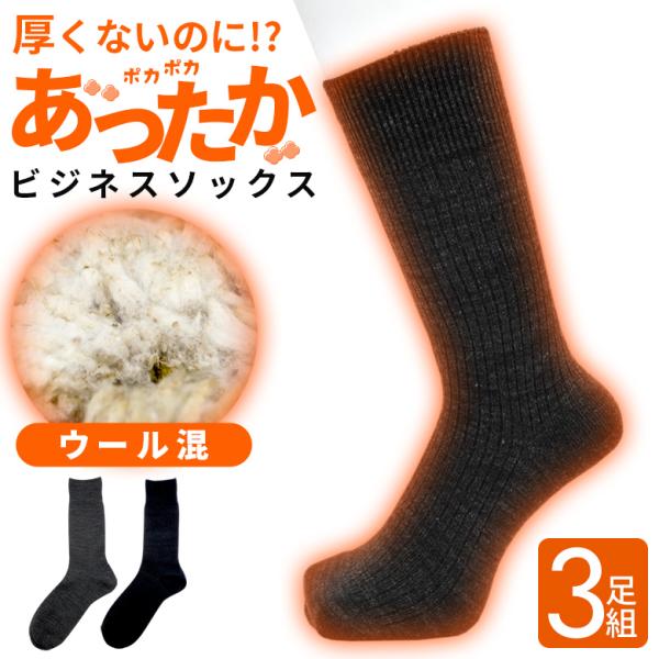靴下 メンズ ビジネスソックス 選べる 3足組 ウール 暖かい あったか 防寒 黒 ブラック かっこいい おしゃれ 紳士 男性 男 ソックス くつした くつ下 ビジネス